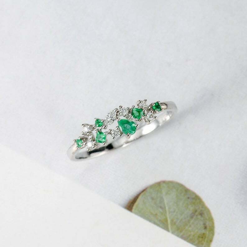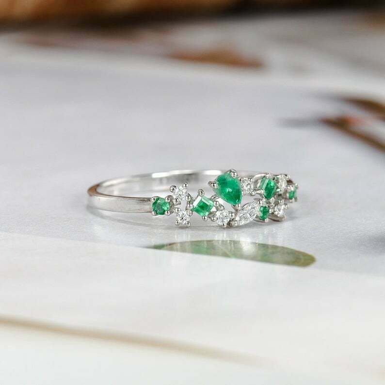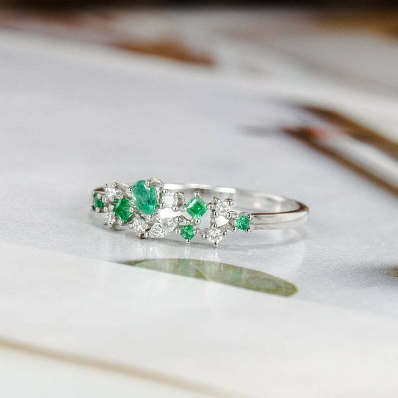 1.5ct Multi Cut Green Emerald Engagement Ring Promise Cluster 14k White Gold Over