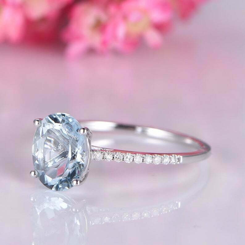 1.5ct Oval Cut Blue Aquamarine Diamond Accent Solitaire Ring 14k White Gold Over