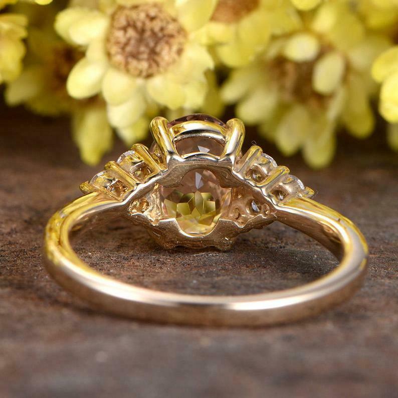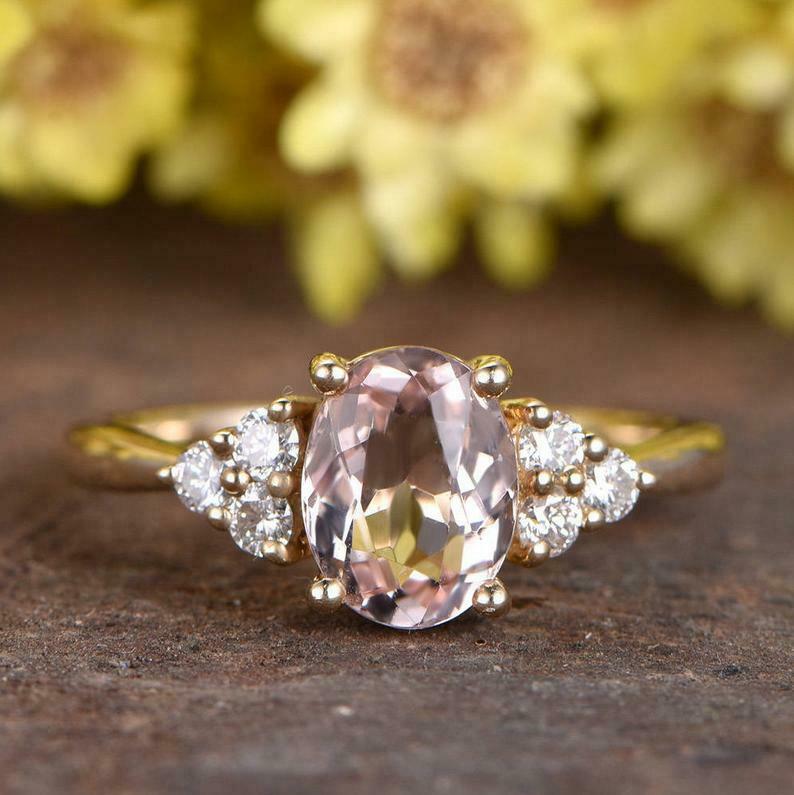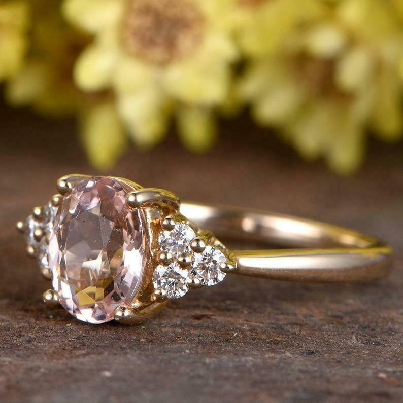 1.5ct Oval Cut Peach Morganite Petite Round Accents Solitaire Ring 14k Yellow Gold Over