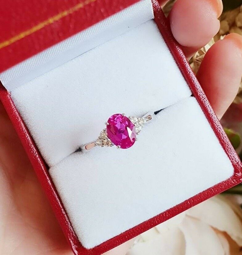 1.5ct Oval Cut Pink Sapphire Engagement Ring 14k White Gold Over Trilogy Promise