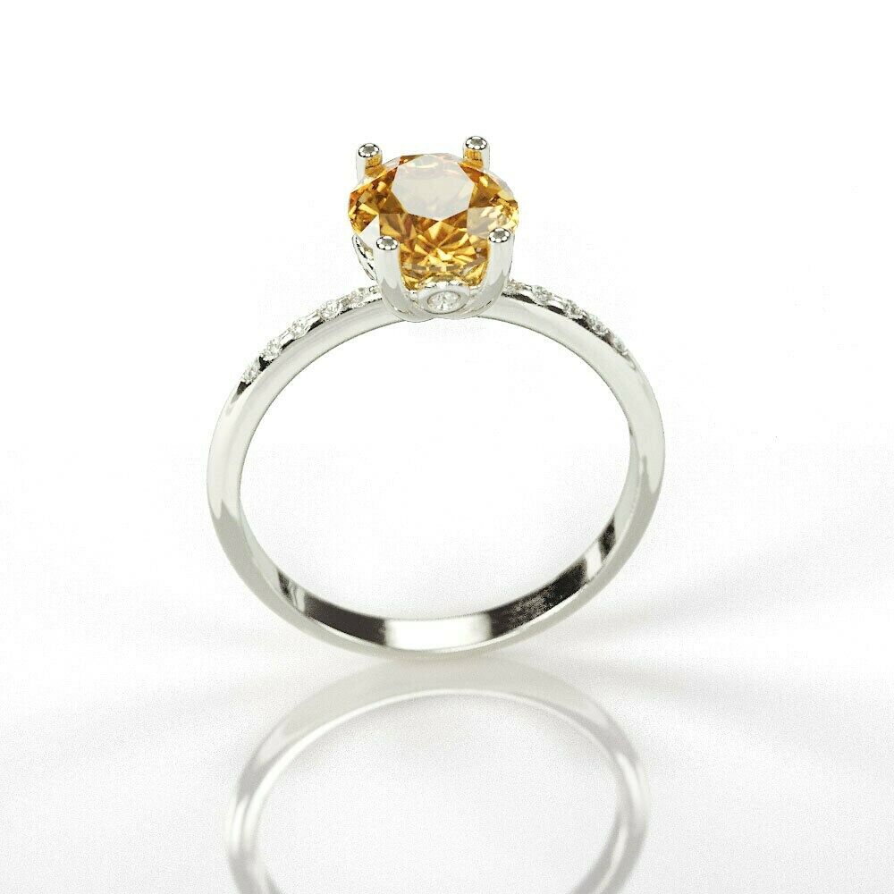 1.5Ct Oval Cut Yellow Citrine Solitaire Ring 14K White Gold Over Diamond Accents