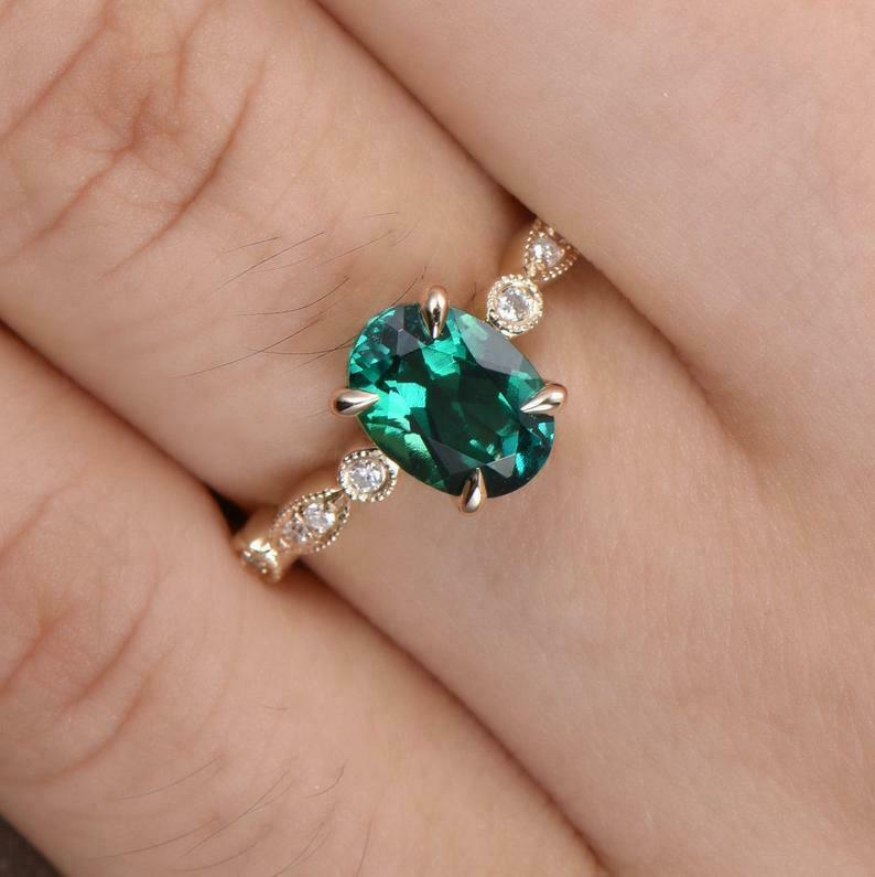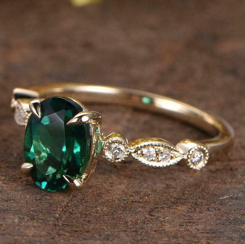 1.5ct Oval Green Emerald Engagement Ring Solitaire Vintage 14k Yellow Gold Over
