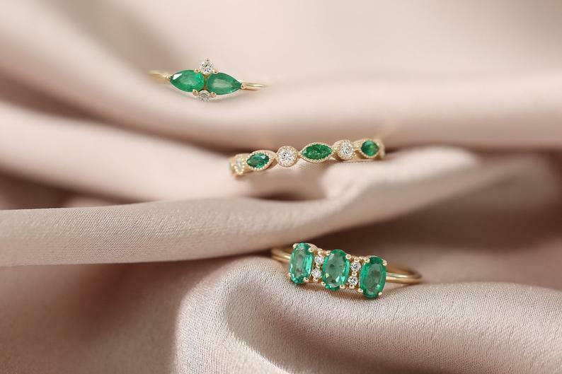 1.5ct Oval Green Emerald Trilogy Minimalist Engagement Ring 14k Yellow Gold Over
