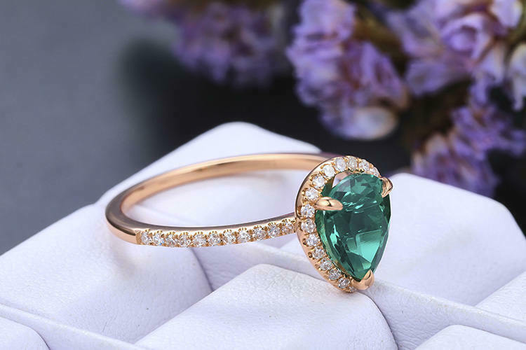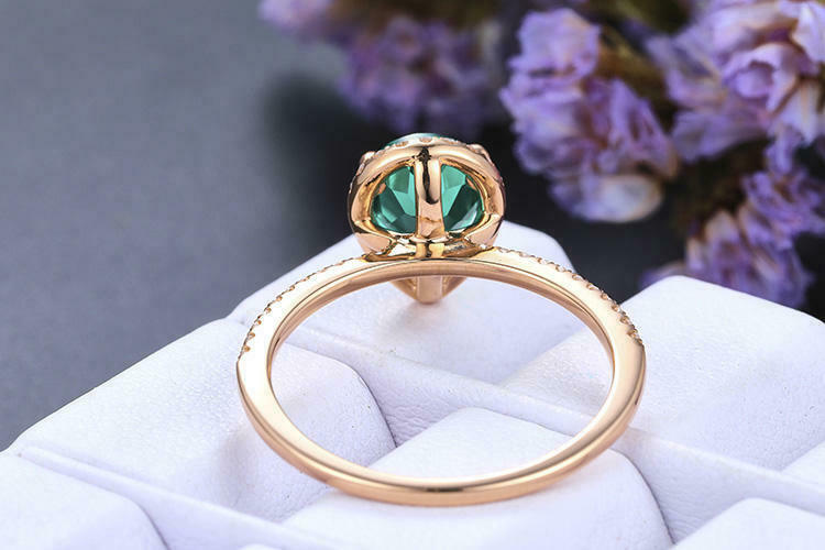 1.5ct Pear Cut Green Emerald Engagement Ring Diamond Halo 14k Rose Gold Finish