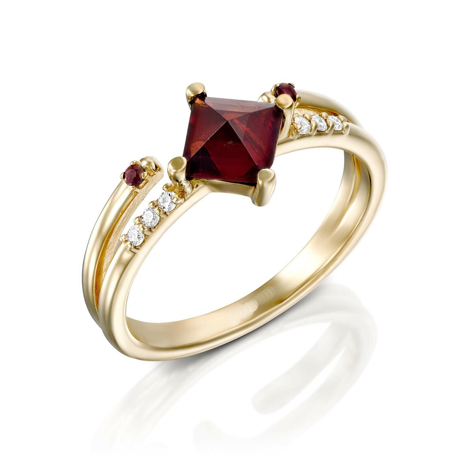 1.5ct Princess Cut Garnet Solitaire with Accent Split Band 14k Yellow Gold Over