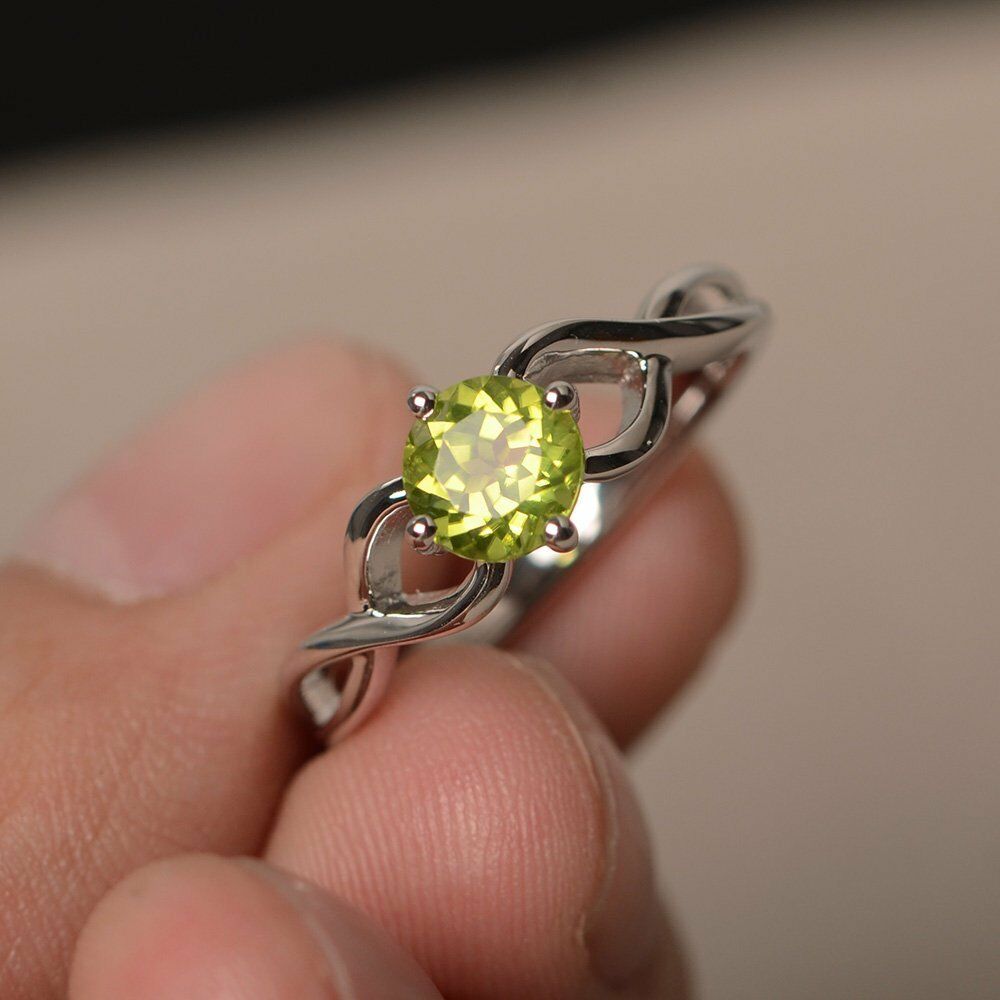 1.5ct Round Cut Green Peridot Engagement Ring 14k White Gold Finish Infinity