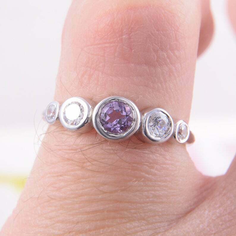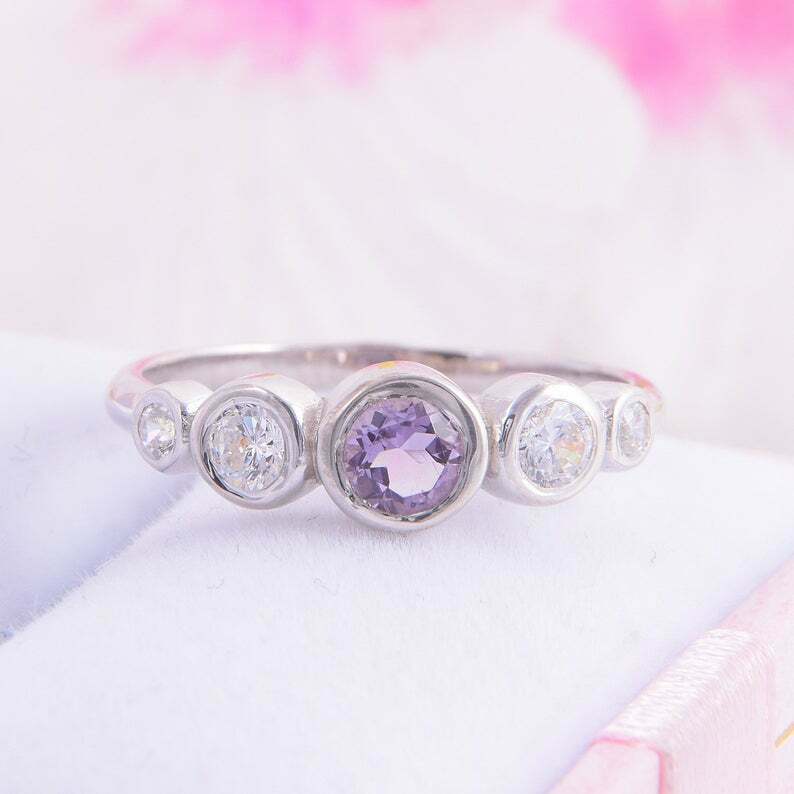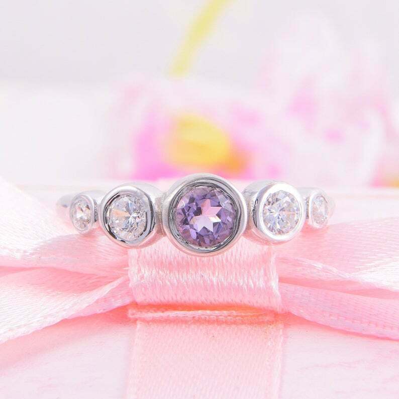 1.5ct Round Cut Purple Amethyst Five Stone Bezel Set Ring 14k White Gold Finish