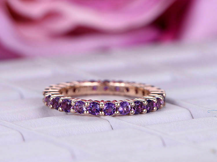 1.5ct Round Cut Purple Amethyst Wedding Band Full Eternity 14k Rose Gold Finish