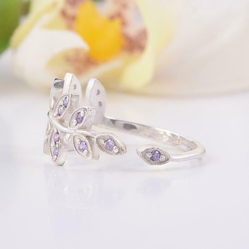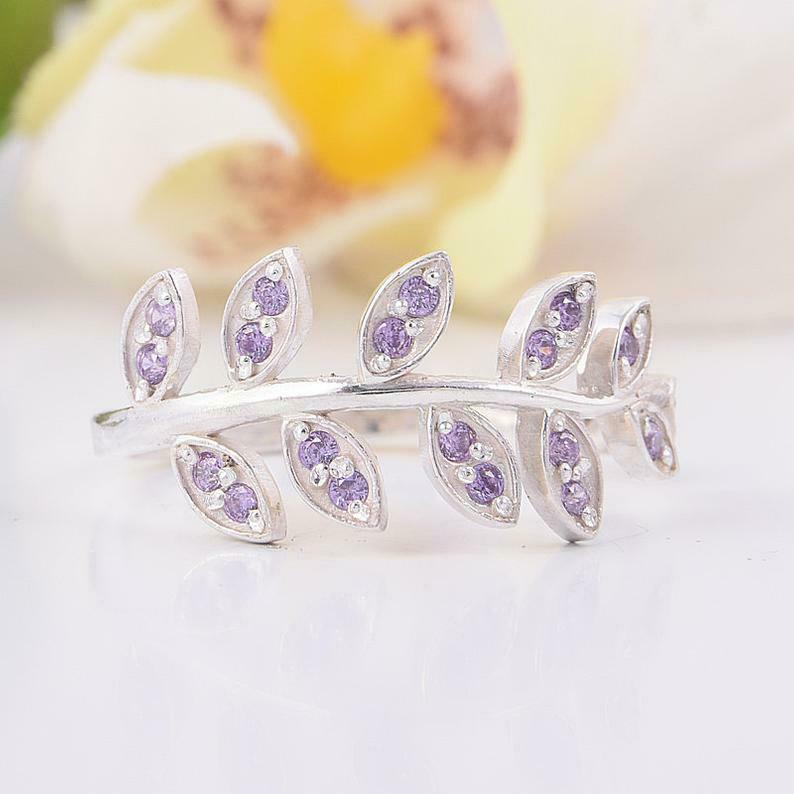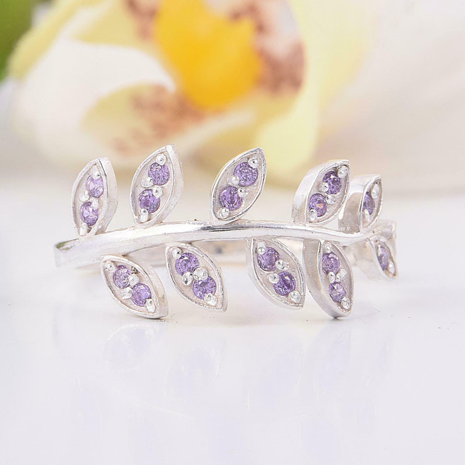 1.5ct Round Purple Amethyst Engagement Ring Floral Leaf Vine 14k White Gold Over