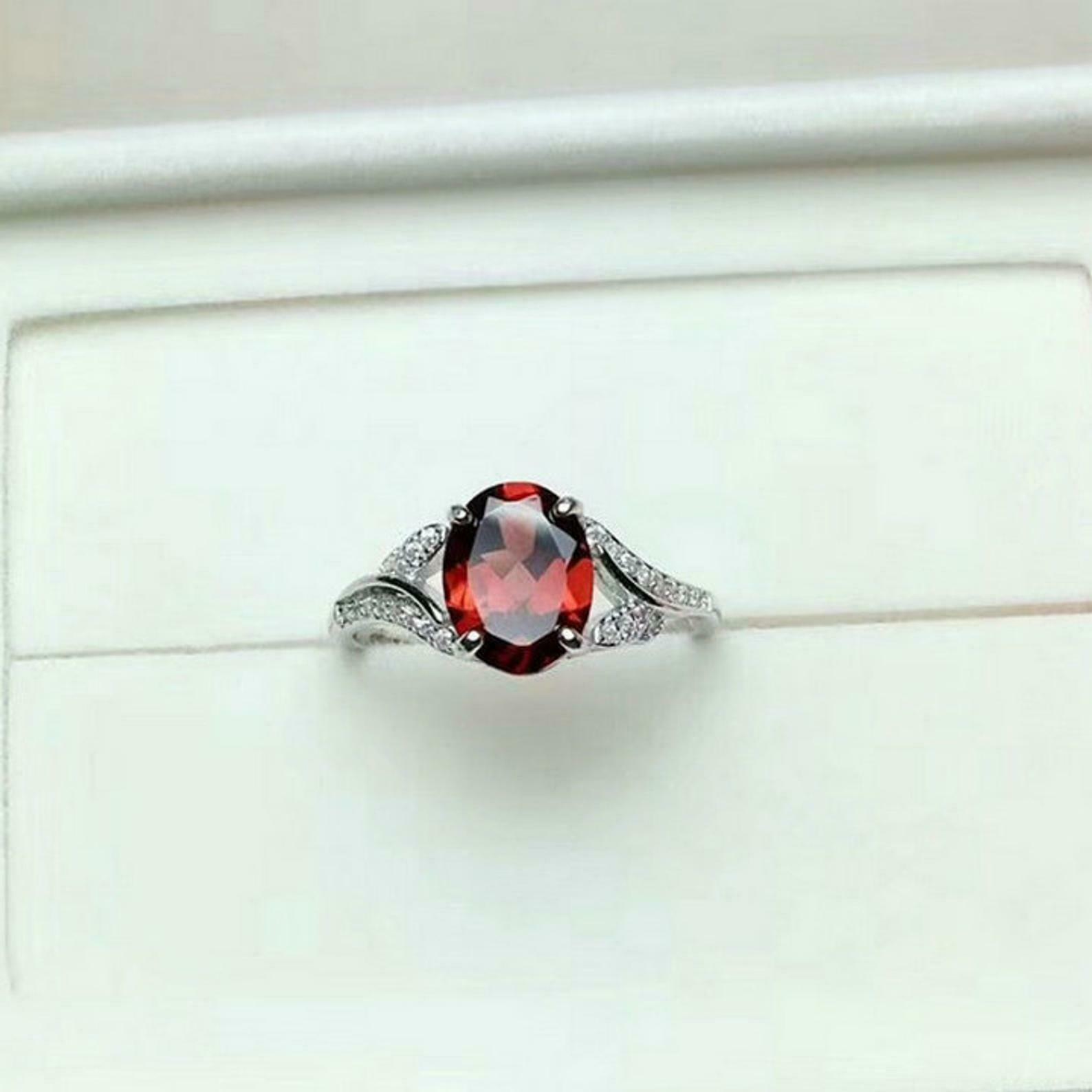 1.6ct Oval Cut Red Garnet Engagement Ring Diamond Split Band 14k White Gold Over