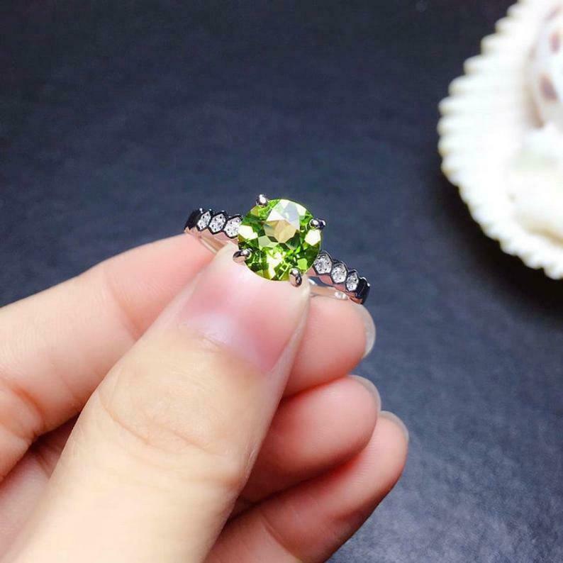 1.6ct Round Green Peridot Diamond Solitaire with Accent Ring 14k White Gold Over