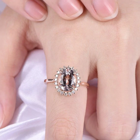 1.72ct Oval Cut Peach Morganite Diamond Halo Solitaire Ring 14k Rose Gold Finish