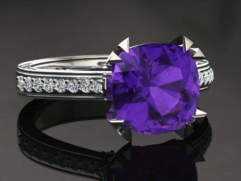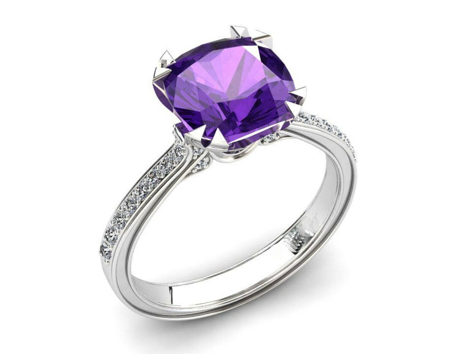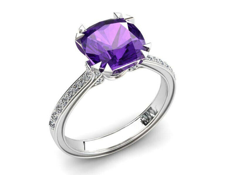 1.7ct Cushion Purple Amethyst Engagement Ring Diamond Accent 14k White Gold Over
