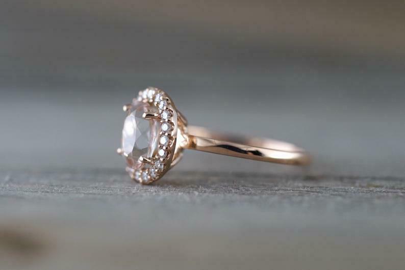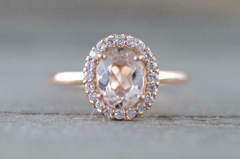 1.7ct Oval Cut Peach Morganite Engagement Ring 14k Rose Gold Over Halo Solitaire