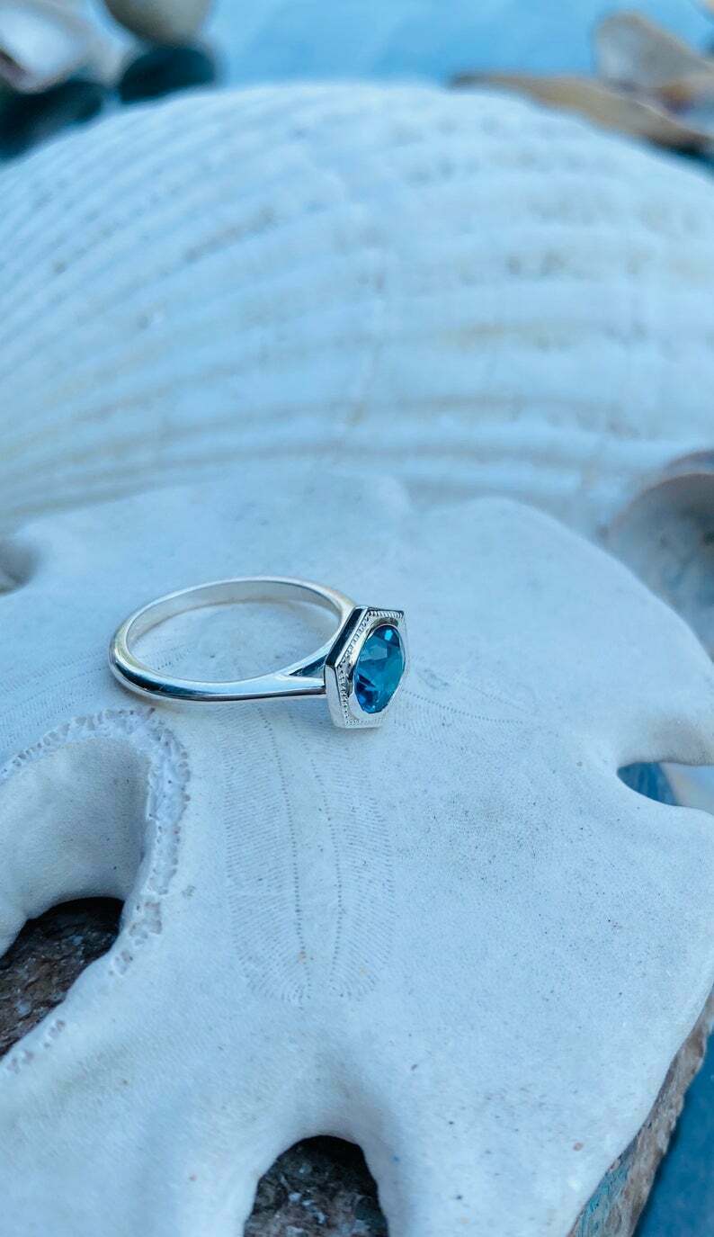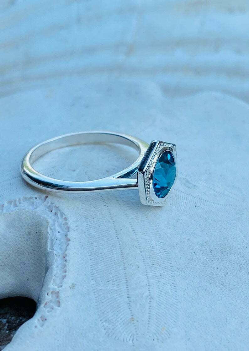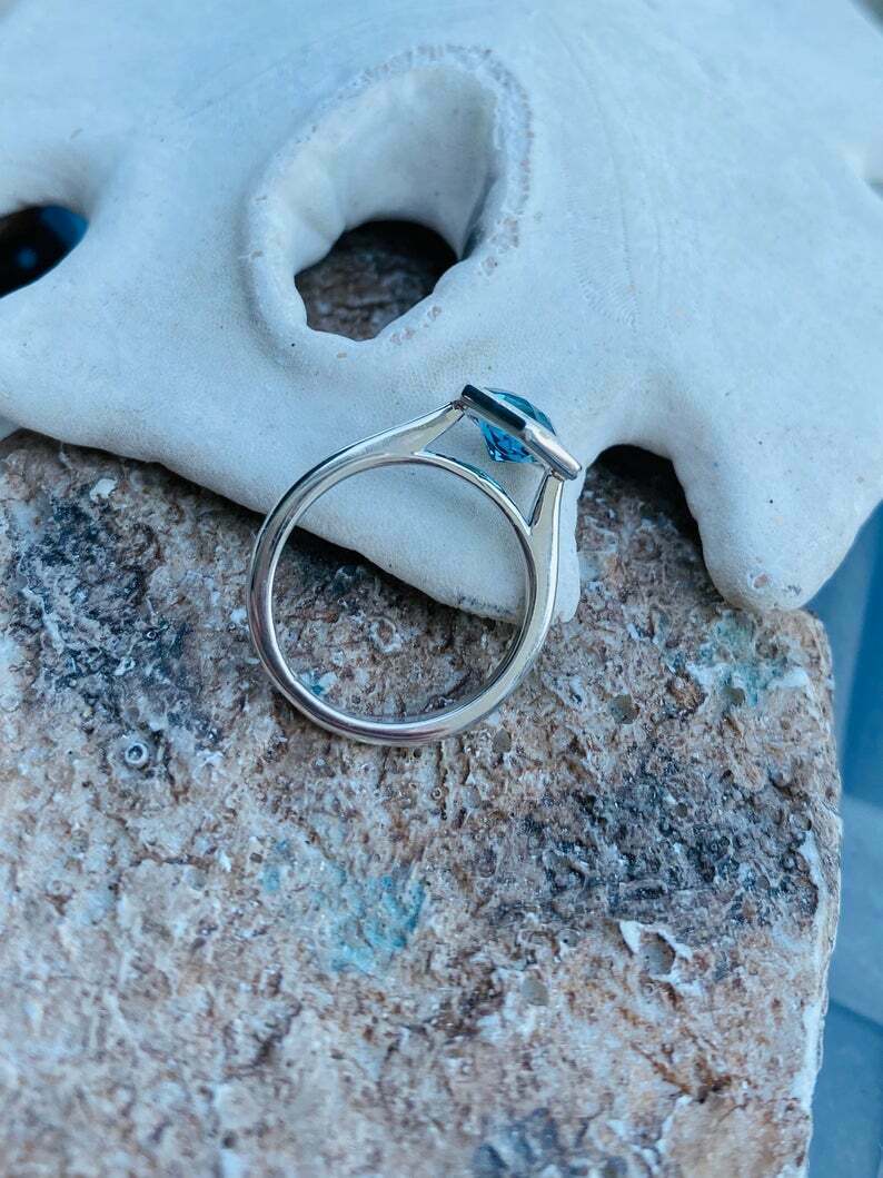 1.7ct Round Cut London Blue Topaz Hexagon Solitaire Ring 14k White Gold Finish