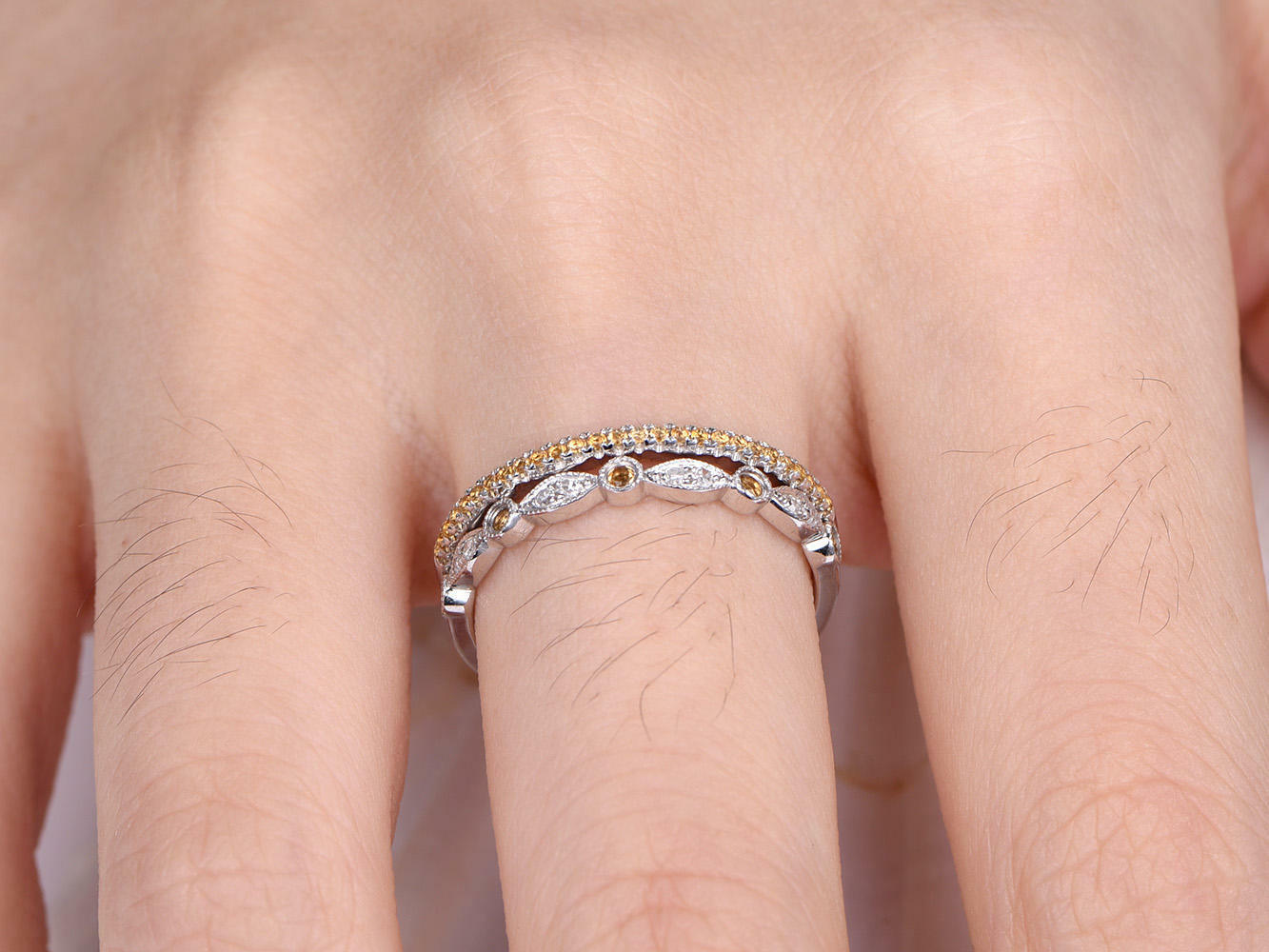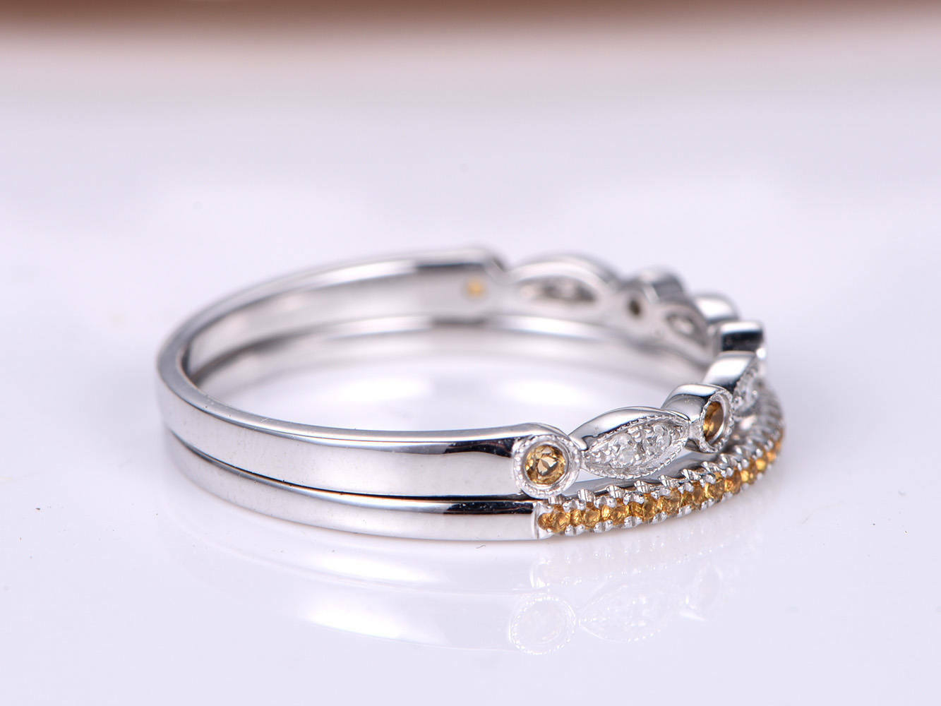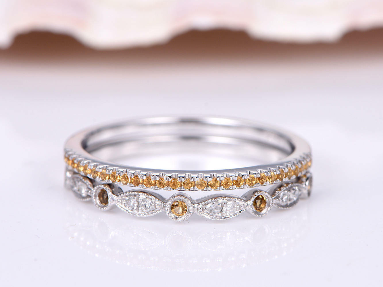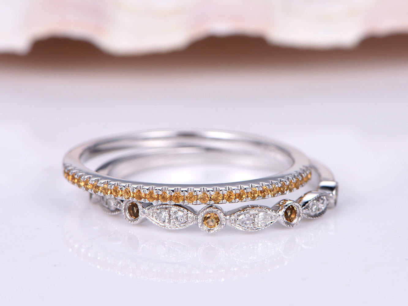 1.9ct Round Cut Yellow Citrine Bridal Set Engagement Ring 14k White Gold Finish