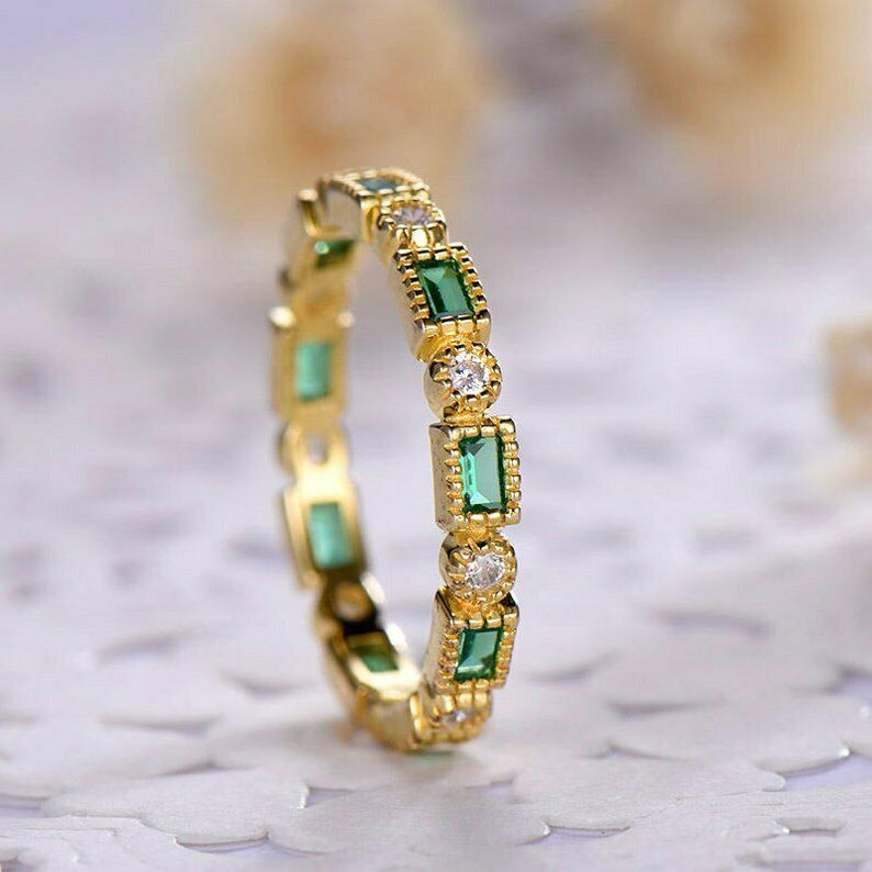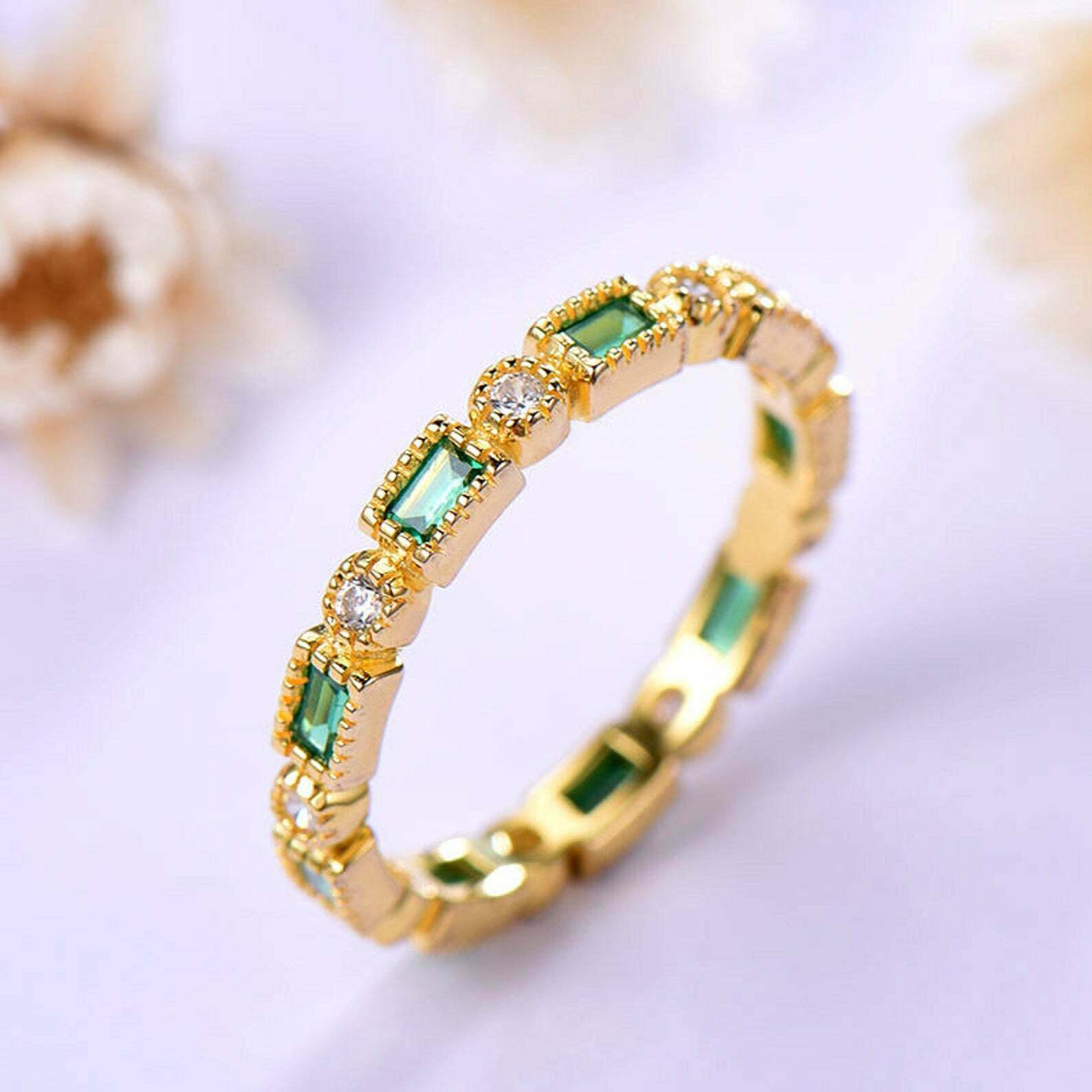 1ct Baguette Cut Green Emerald Stackable Eternity Women Band 14k YellowGold Over