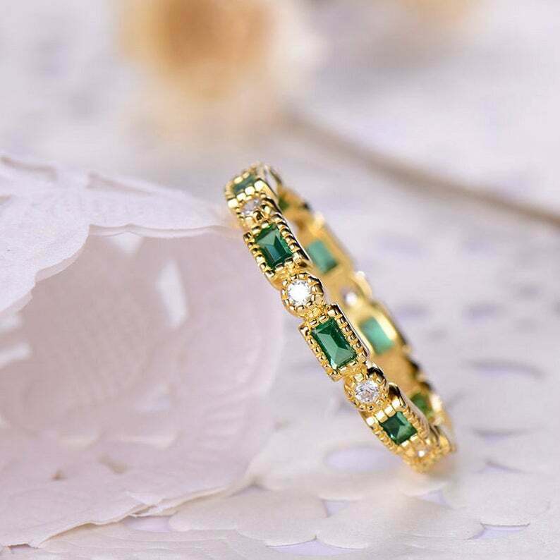 1ct Baguette Cut Green Emerald Stackable Eternity Women Band 14k Yellow Gold Over
