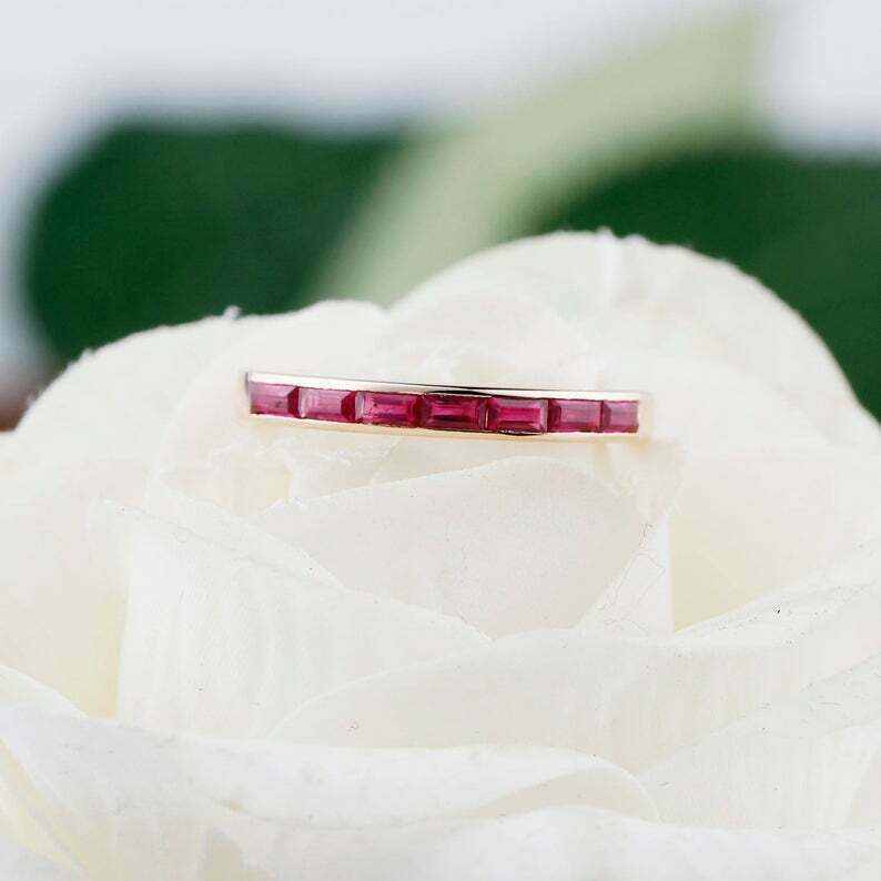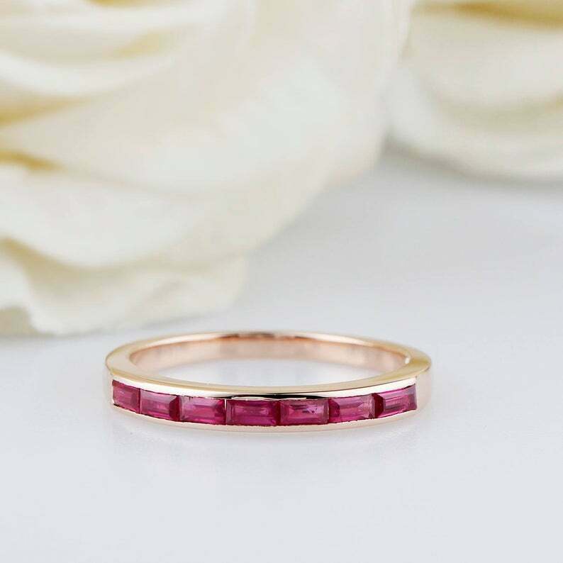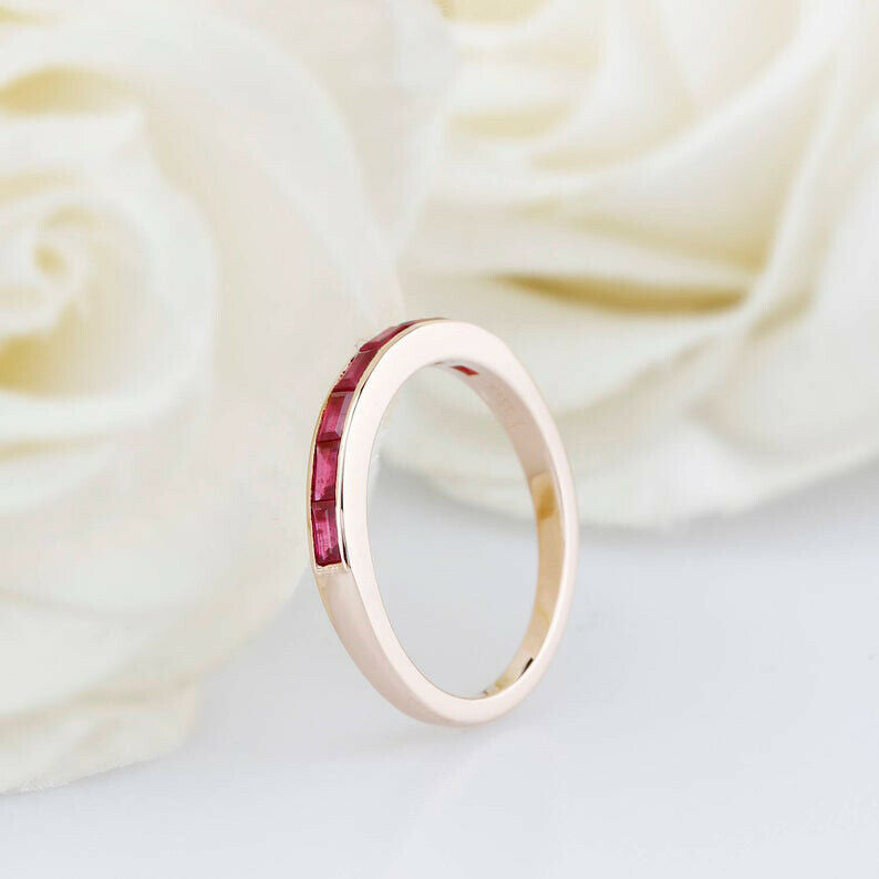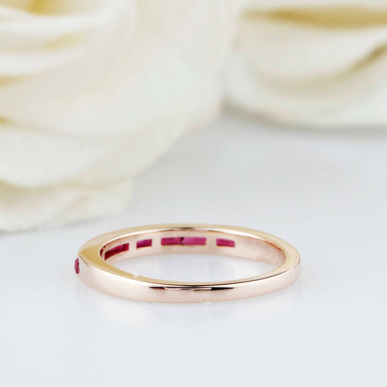 1ct Baguette Pink Ruby Wedding Band Channel Set Half Eternity 14k Rose Gold Over