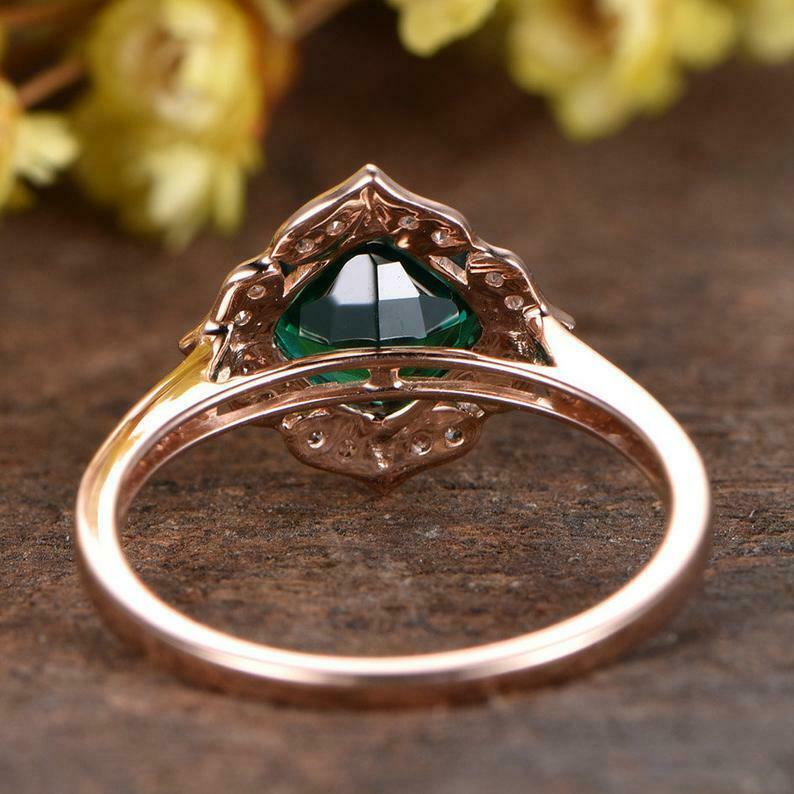 1ct Cushion Cut Green Emerald Engagement Ring Solitaire Floral 14k RoseGold Over