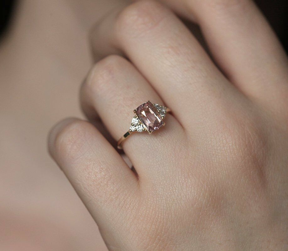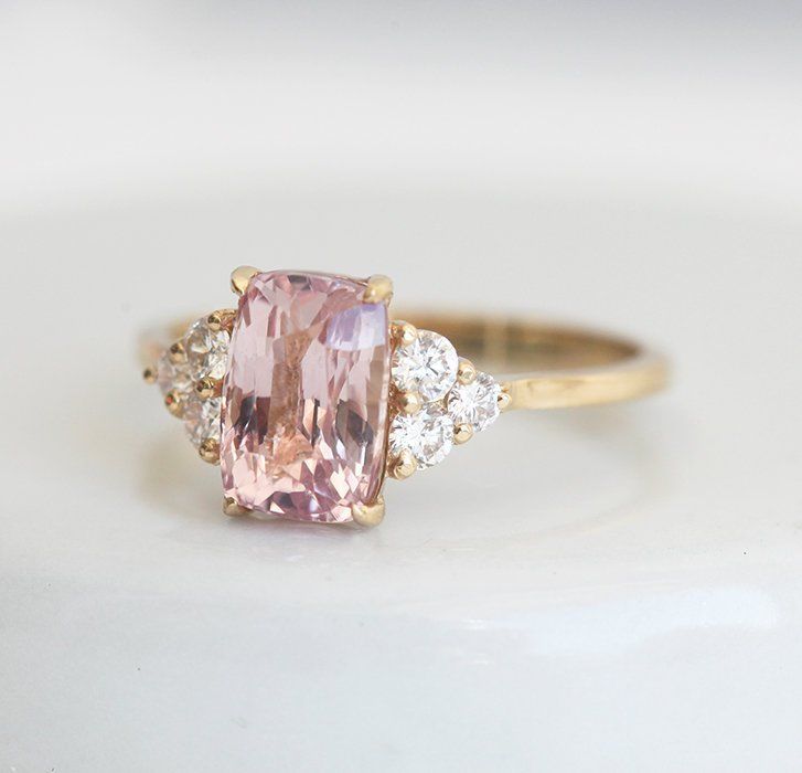 1ct Cushion Cut Peach Morganite Solitaire Engagement Ring 14k Yellow Gold Finish