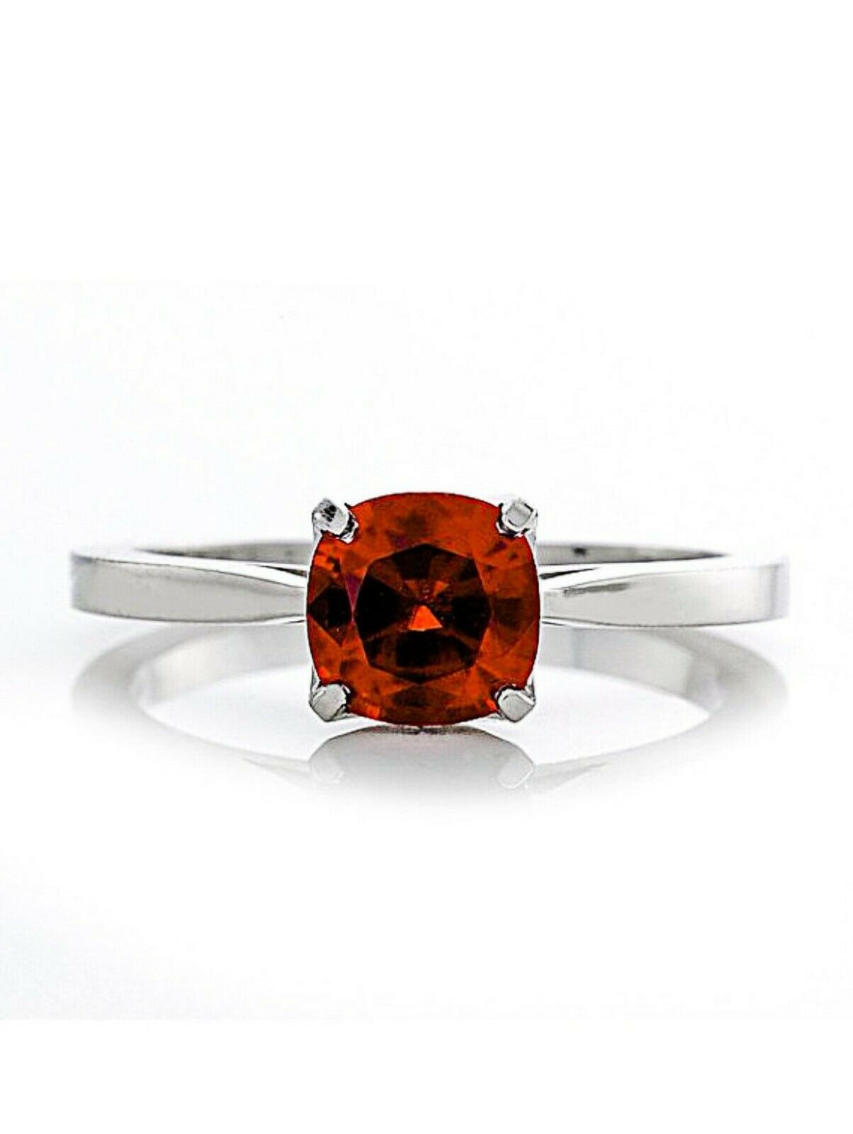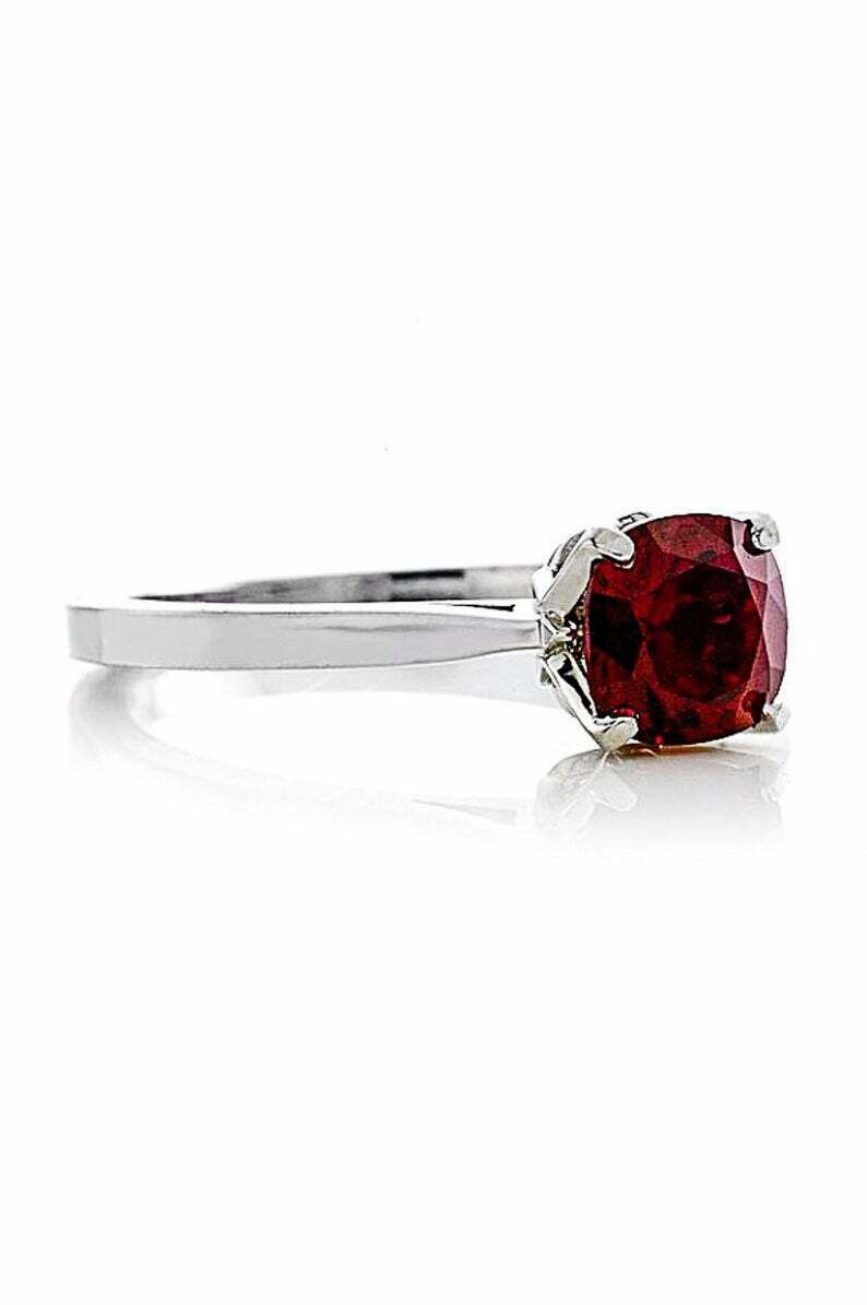 1ct Cushion Cut Red Garnet Engagement Ring Solitaire Women 14k White Gold Finish