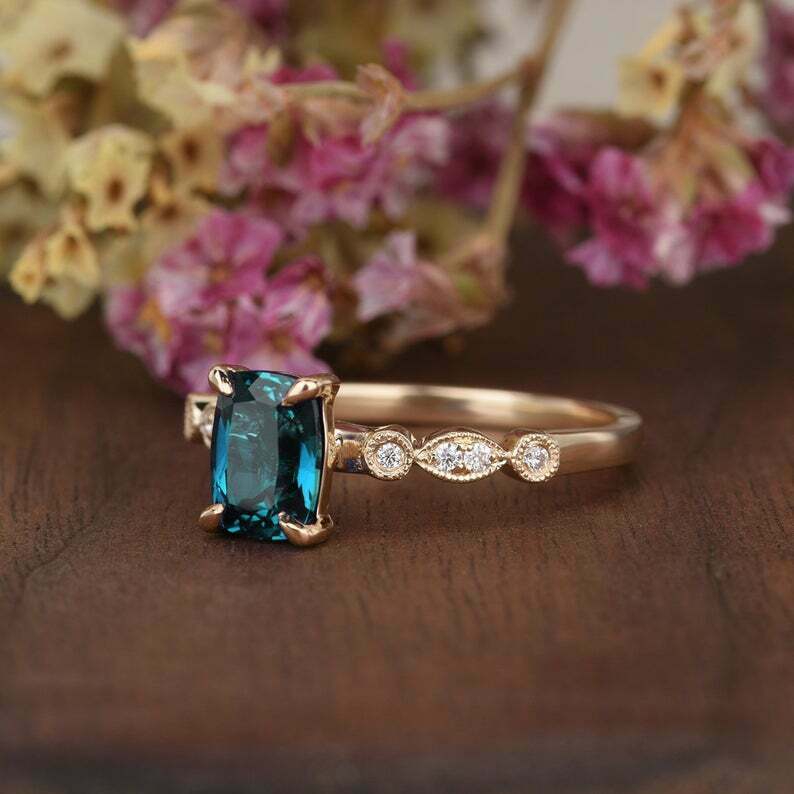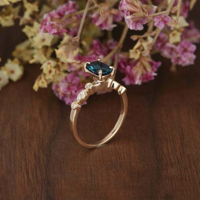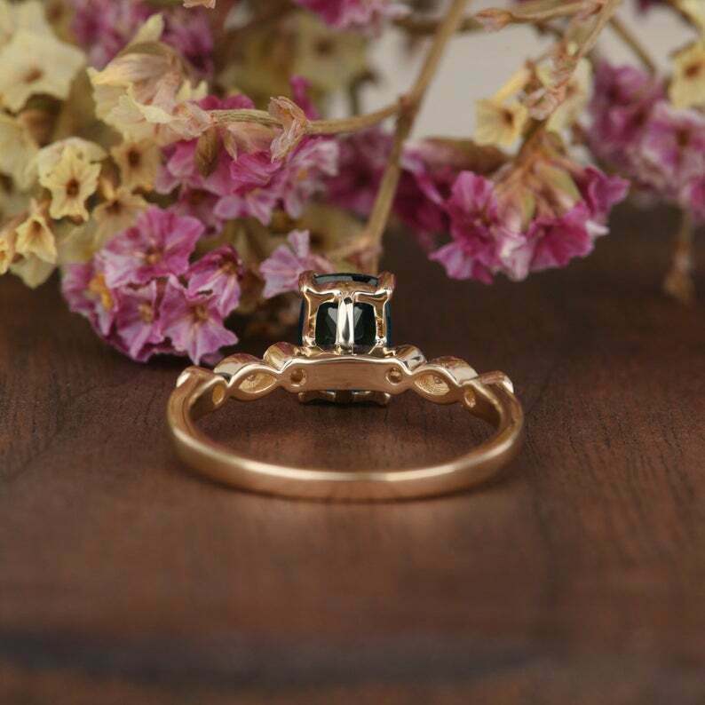 1ct Elongated Cushion Cut London Blue Topaz Solitaire Ring 14k Yellow Gold Finish