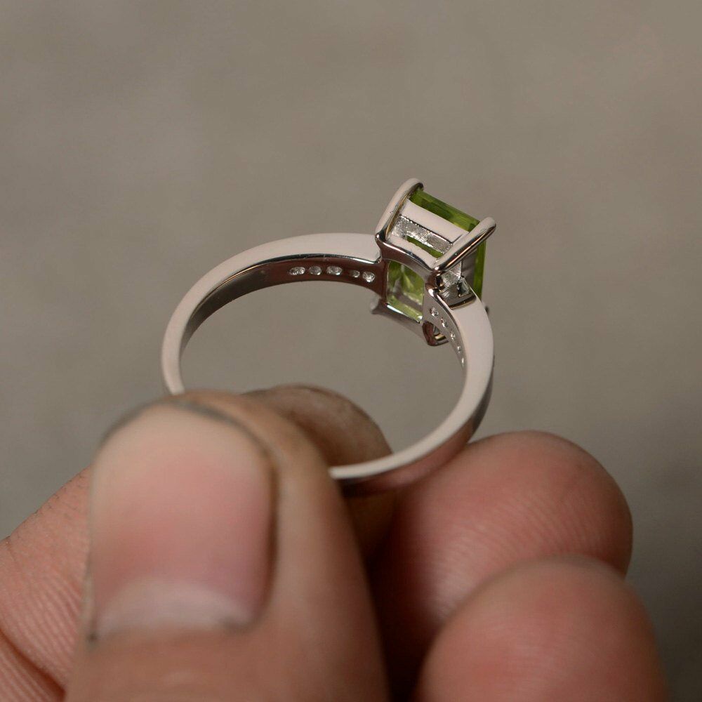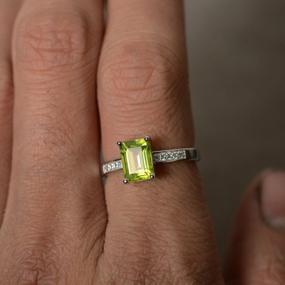 1ct Emerald Green Peridot Engagement Ring 14k White Gold Finish Accent Solitaire