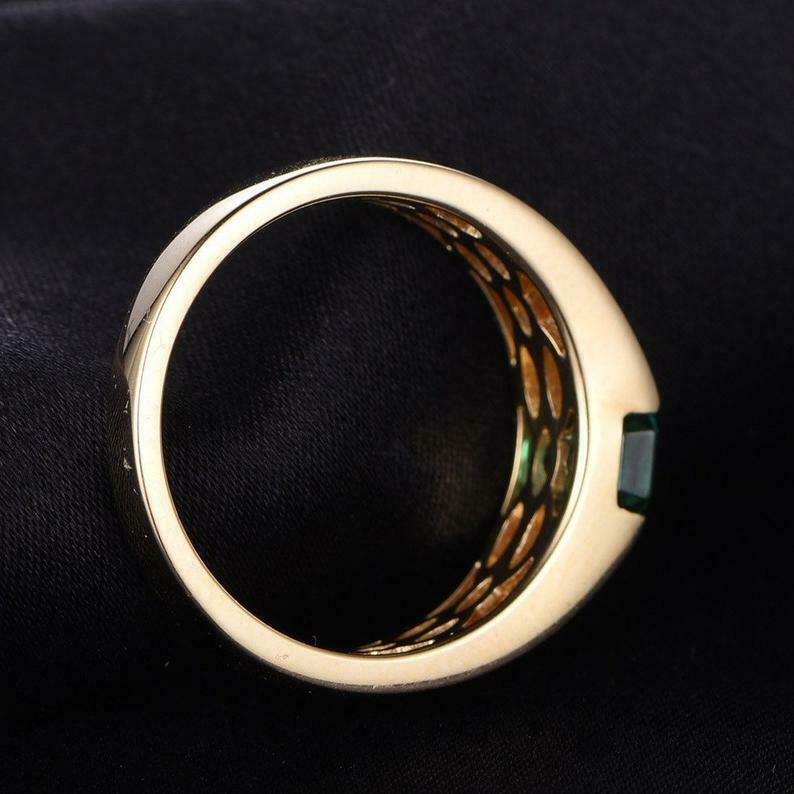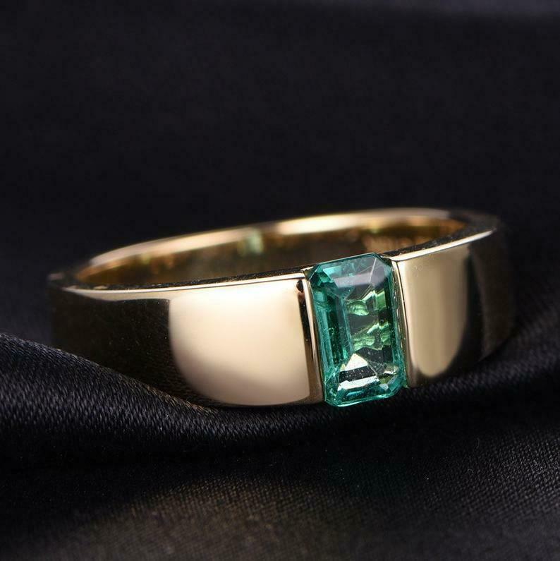 1ct Green Emerald Cut Engagement Ring Tension Set Solitaire 14k Yellow Gold Over