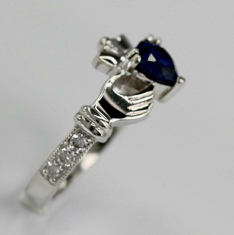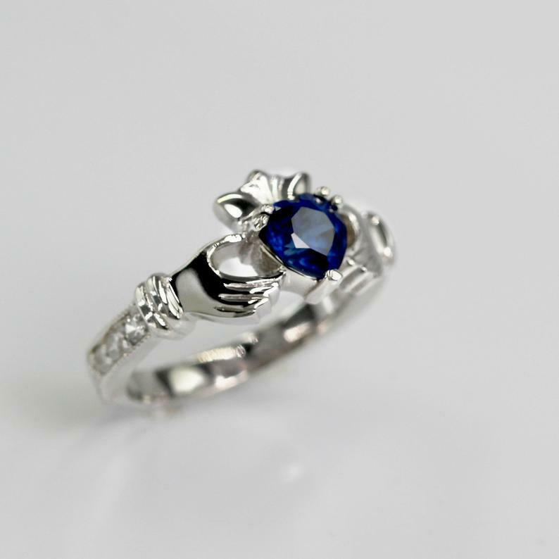 1ct Heart Cut Blue Sapphire Engagement Ring Diamond Claddagh 14k White Gold Over