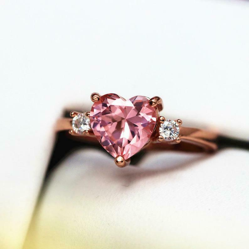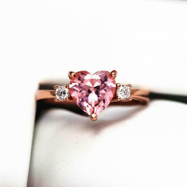 1ct Heart Cut Morganite Engagement Ring Diamond Accent Trilogy 14k RoseGold Over