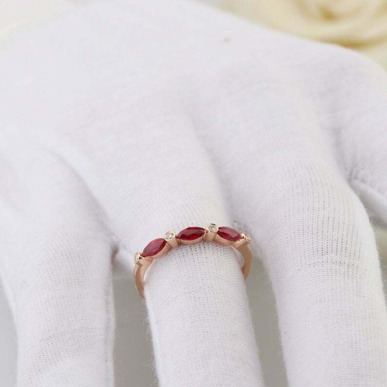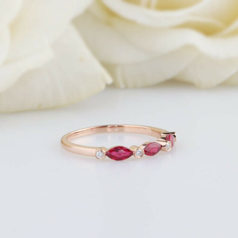 1ct Marquise Cut Alternate Pink Ruby Diamond Wedding Band 14k Rose Gold Finish