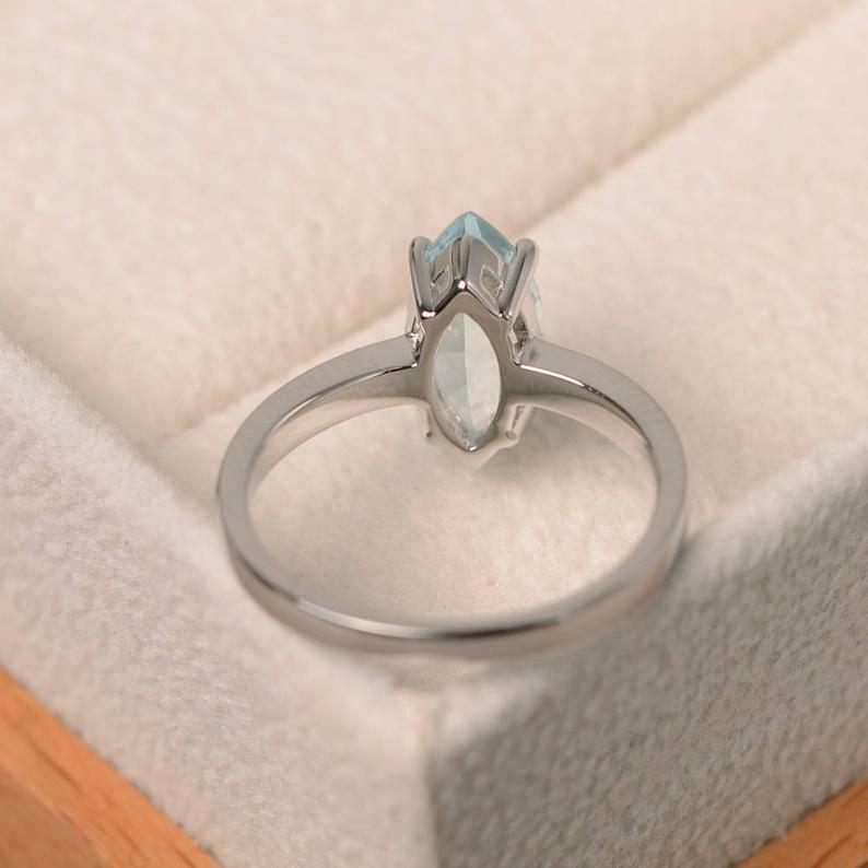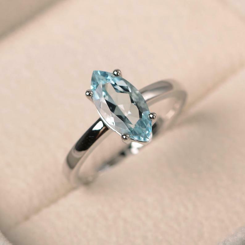 1ct Marquise Cut Blue Aquamarine Engagement Ring Solitaire 14k White Gold Finish