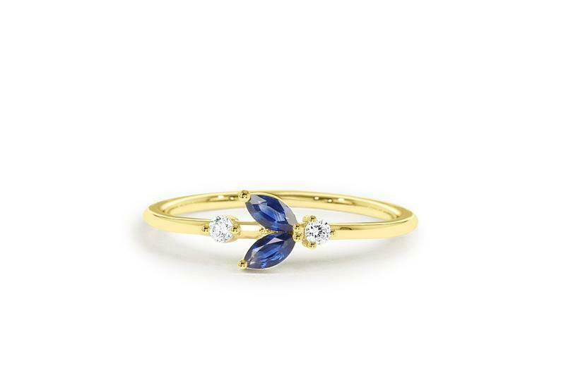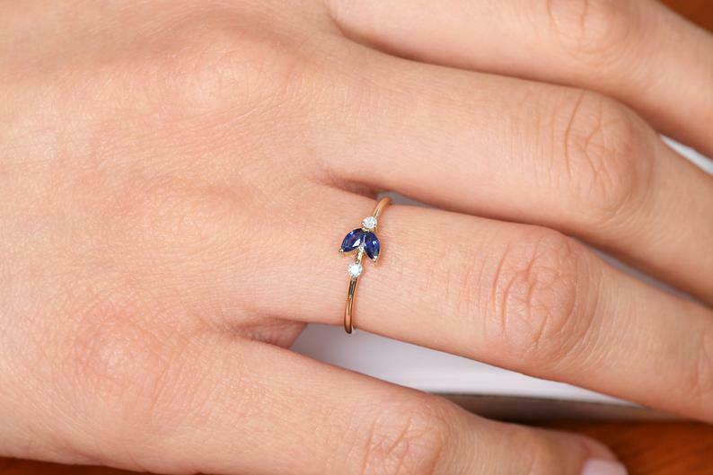 1ct Marquise Cut Blue Sapphire Minimalist Engagement Ring 14k Yellow Gold Finish