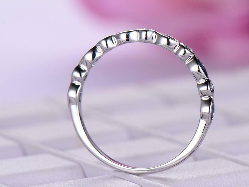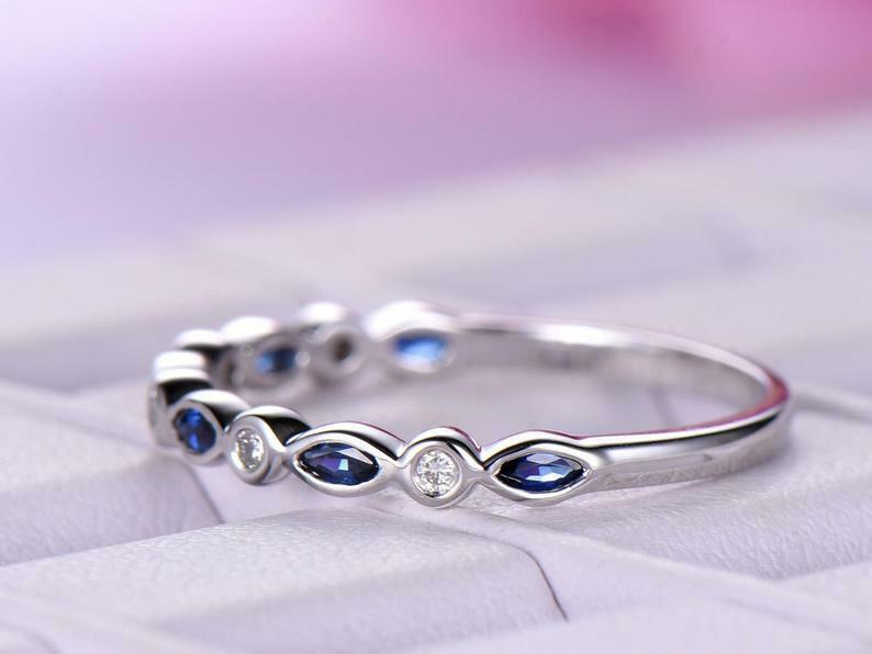 1ct Marquise Cut Blue Sapphire Wedding Band Half Eternity 14k White Gold Finish