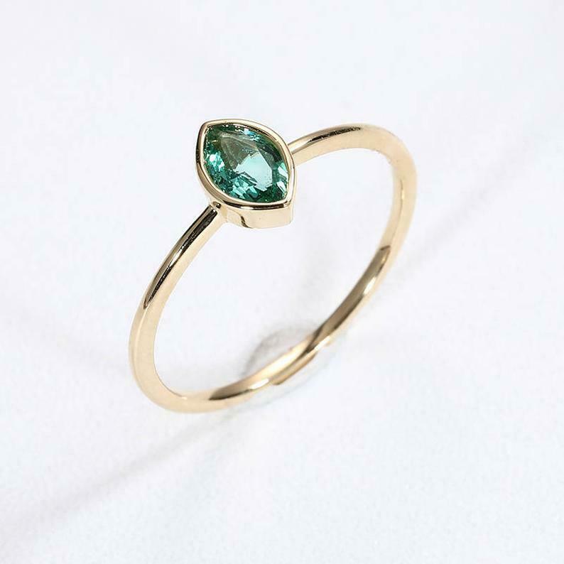 1ct Marquise Cut Green Emerald Solitaire Engagement Ring 14k Yellow Gold Finish