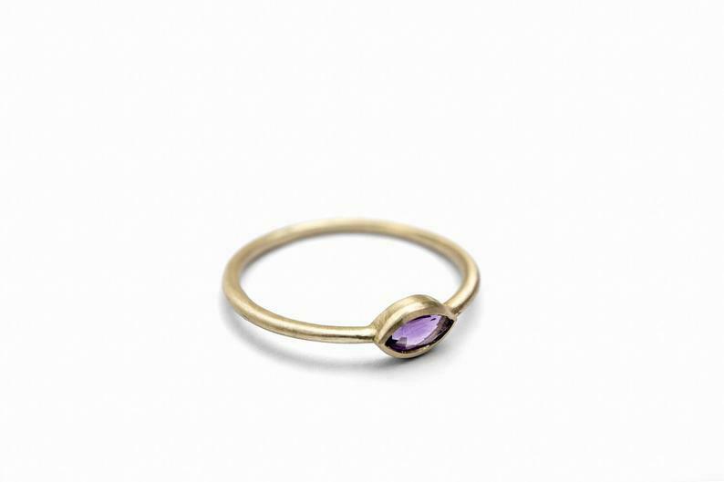1ct Marquise Cut Purple Amethyst Engagement Ring Bezel Set Solitaire 14k Yellow Gold Finish