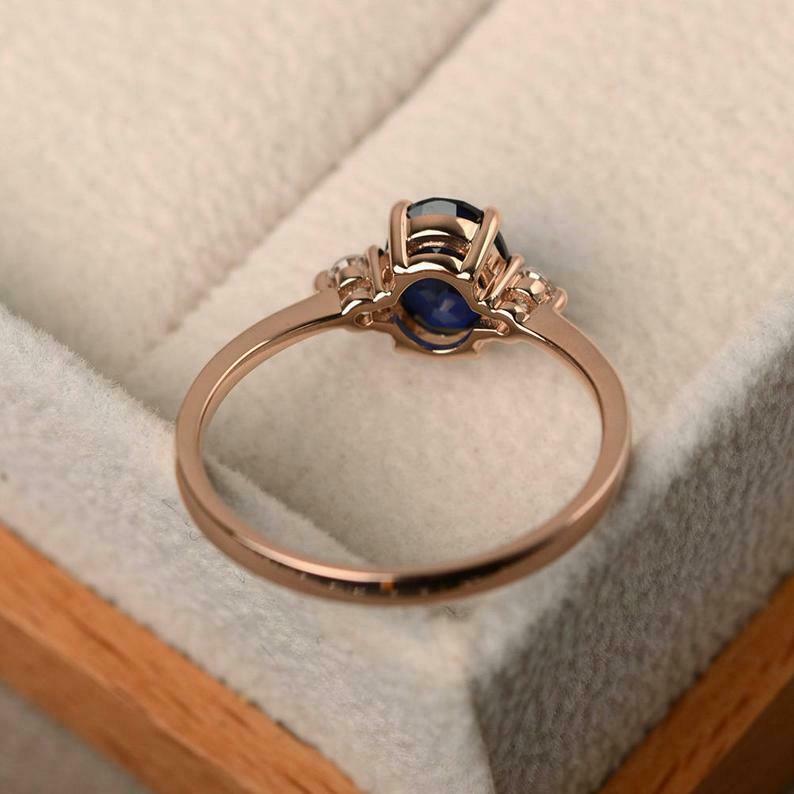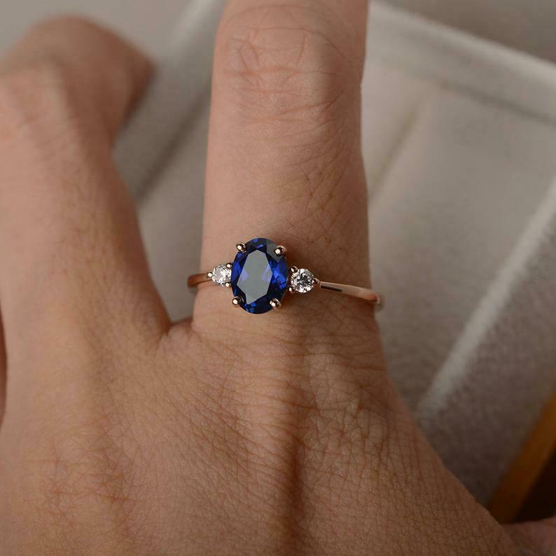 1ct Oval Cut Blue Sapphire Engagement Ring Round Accents Trilogy 14k Rose Gold Over