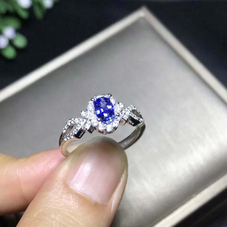 1ct Oval Cut Blue Tanzanite Engagement Ring Halo 14k WhiteGold Over Round Accent