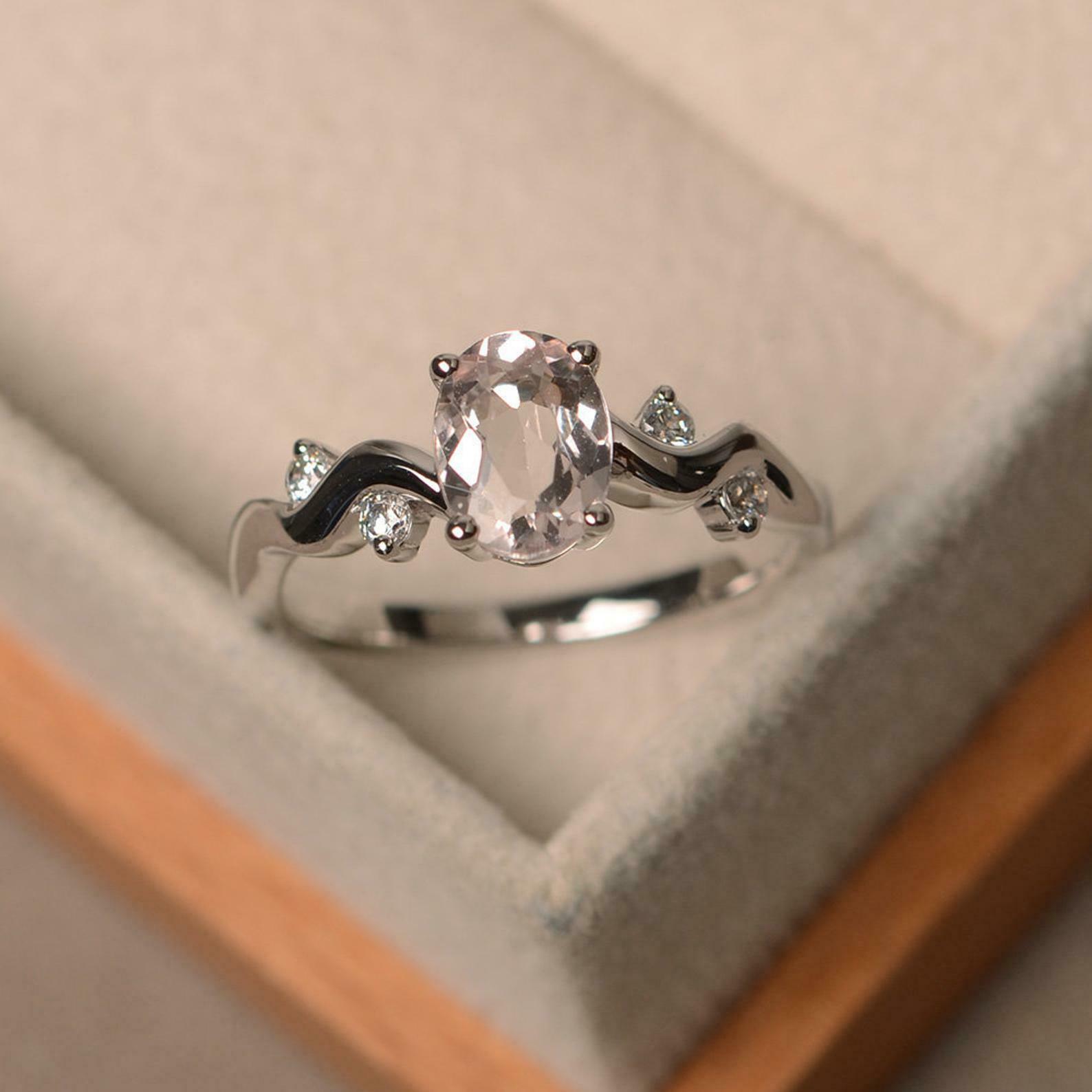 1ct Oval Cut Peach Morganite Solitaire Round Wavy Accent Ring 14k WhiteGold Over