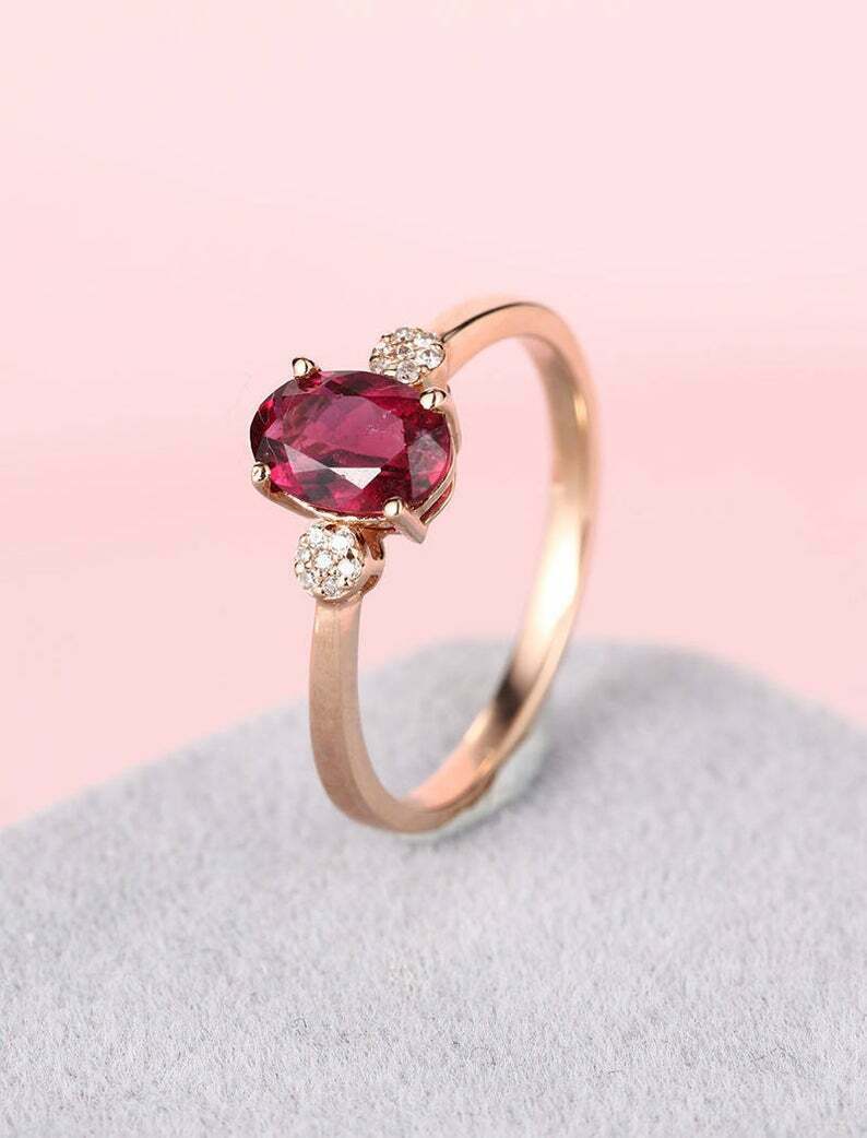 1ct Oval Cut Pink Ruby Engagement Ring Cluster Solitaire 14k Rose Gold Finish