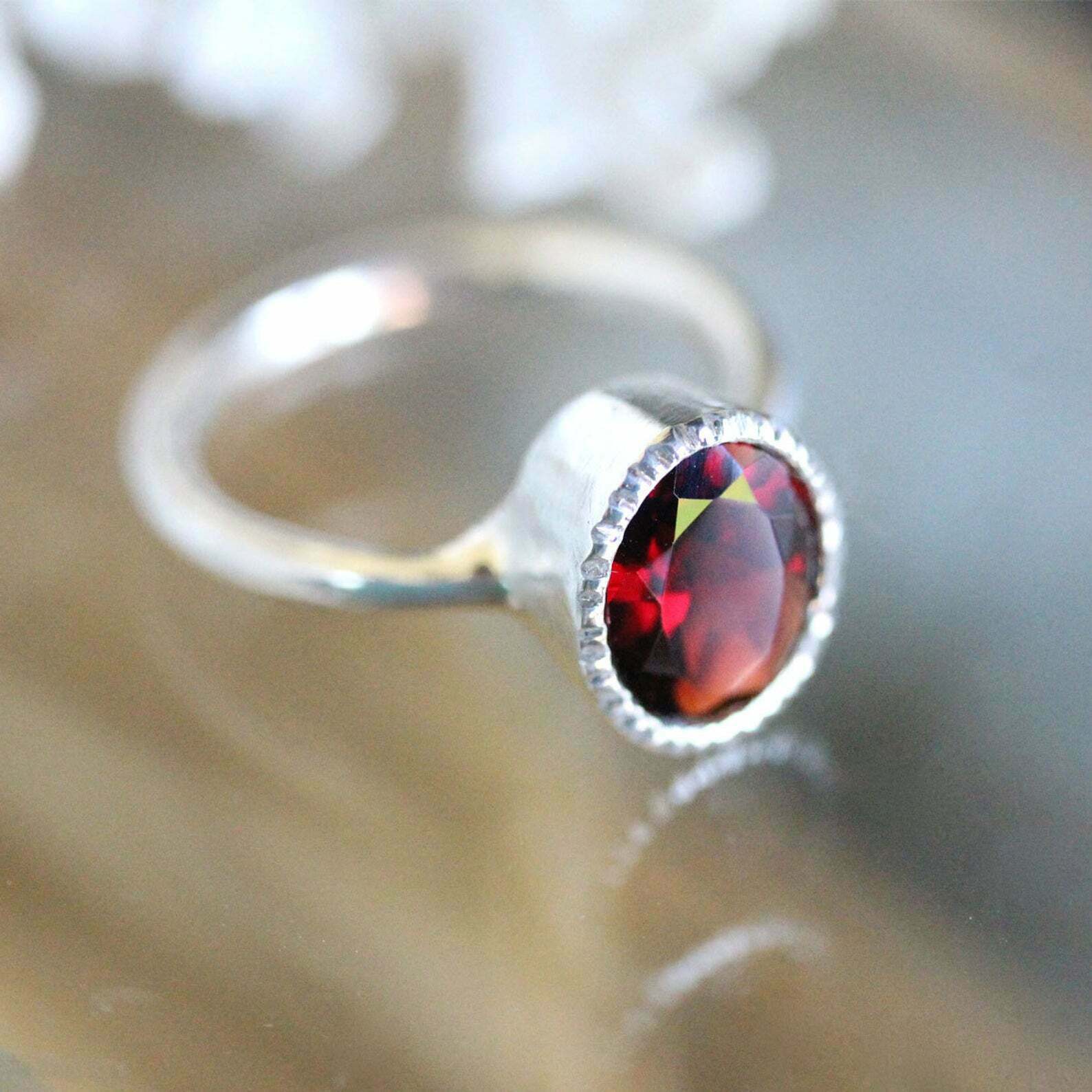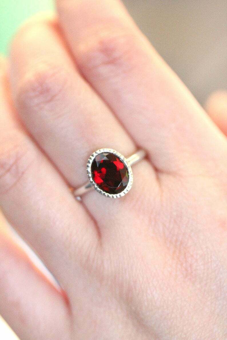 1ct Oval Cut Red Garnet Engagement Ring Bezel Set Solitaire 14k WhiteGold Finish