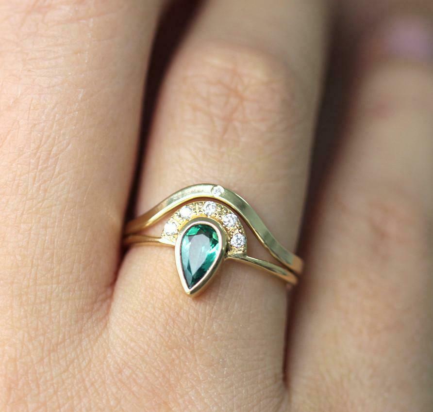 1ct Pear Cut Green Emerald Engagement Ring 14k Yellow Gold Finish Queen Crown