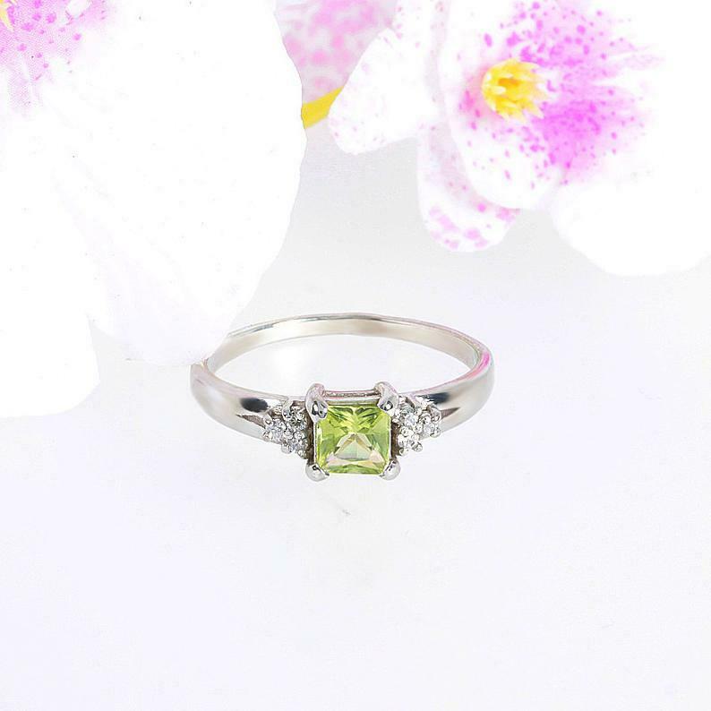 1ct Princess Green Peridot Engagement Ring Petite Solitaire 14k White Gold Over