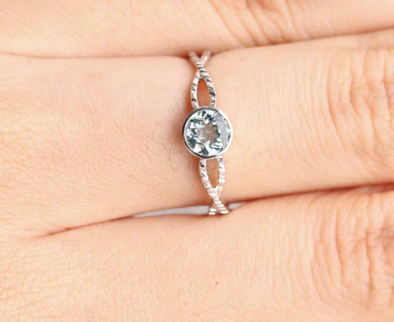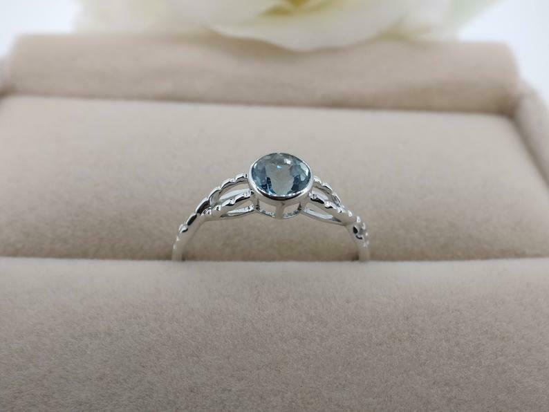 1ct Round Blue Aquamarine Engagement Ring Bezel Set Solitaire 14k White Gold Over