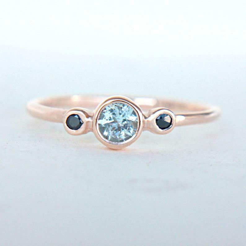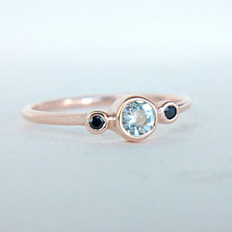 1ct Round Blue Aquamarine Engagement Ring Trilogy Minimalist 14k Rose Gold Over