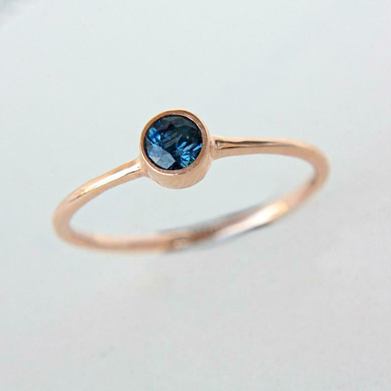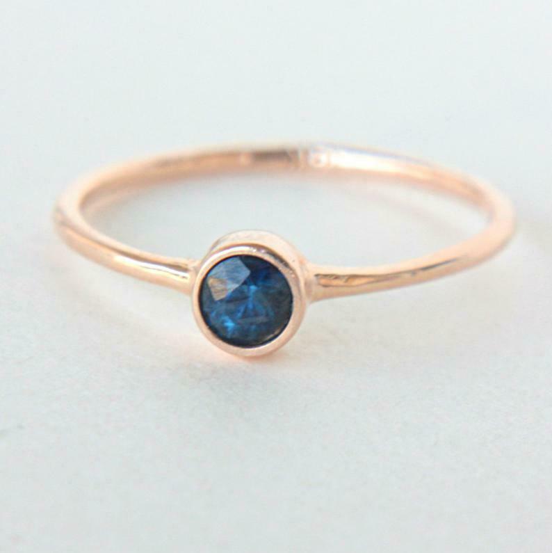 1ct Round Cut Blue Sapphire Engagement Ring Bezel Set Solitaire 14k Rose Gold Finish