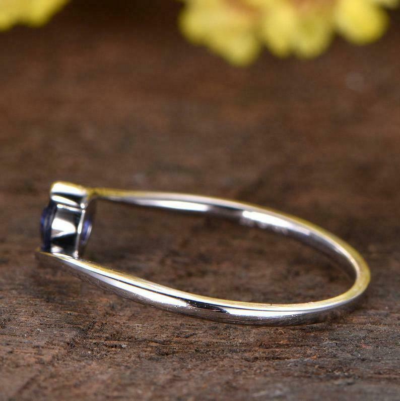 1ct Round Cut Blue Sapphire Engagement Ring Twist Swirl Solitaire 14k White Gold Over