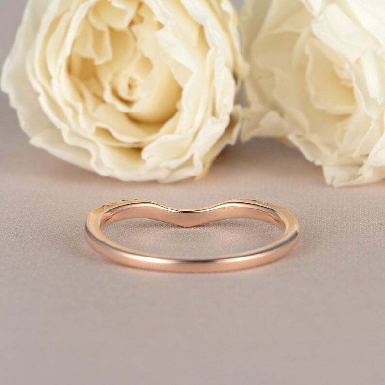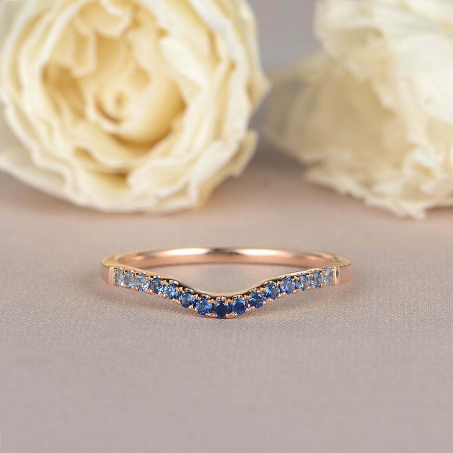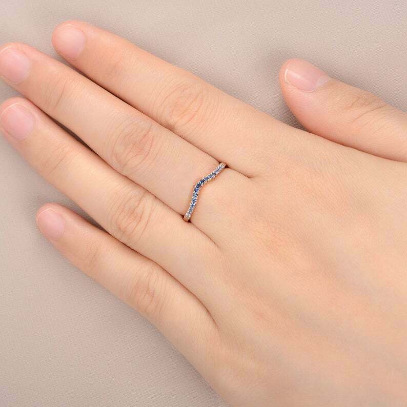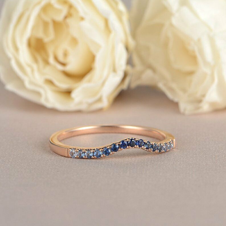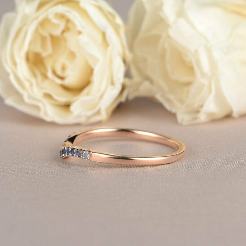1ct Round Cut Blue Sapphire Wedding Band Curved Half Eternity 14k Rose Gold Over