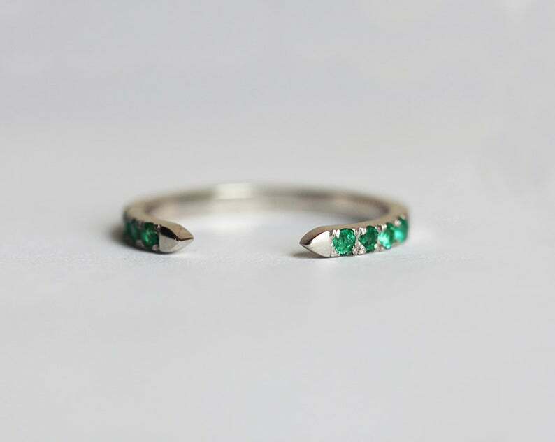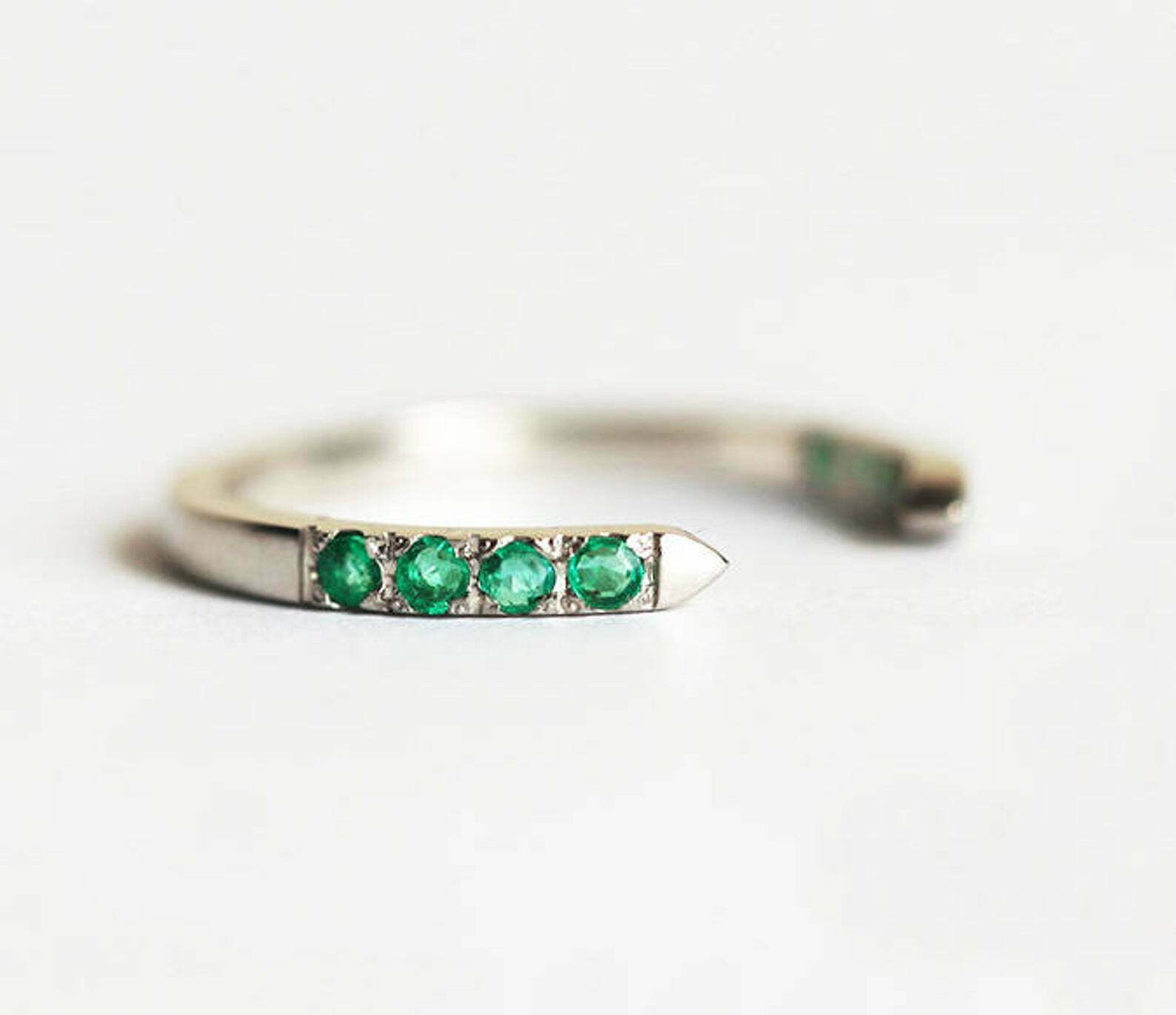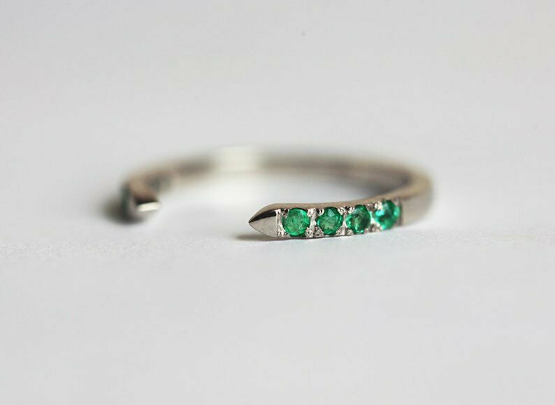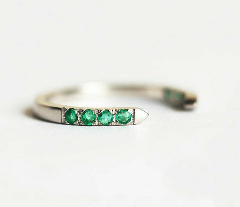 1ct Round Cut Green Emerald Engagement Ring 14k White Gold Finish Open Stackable